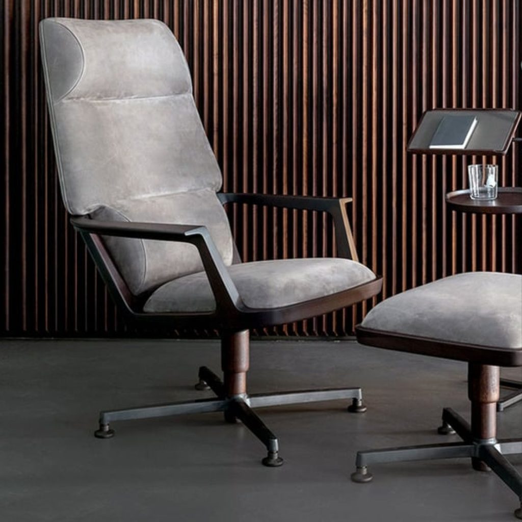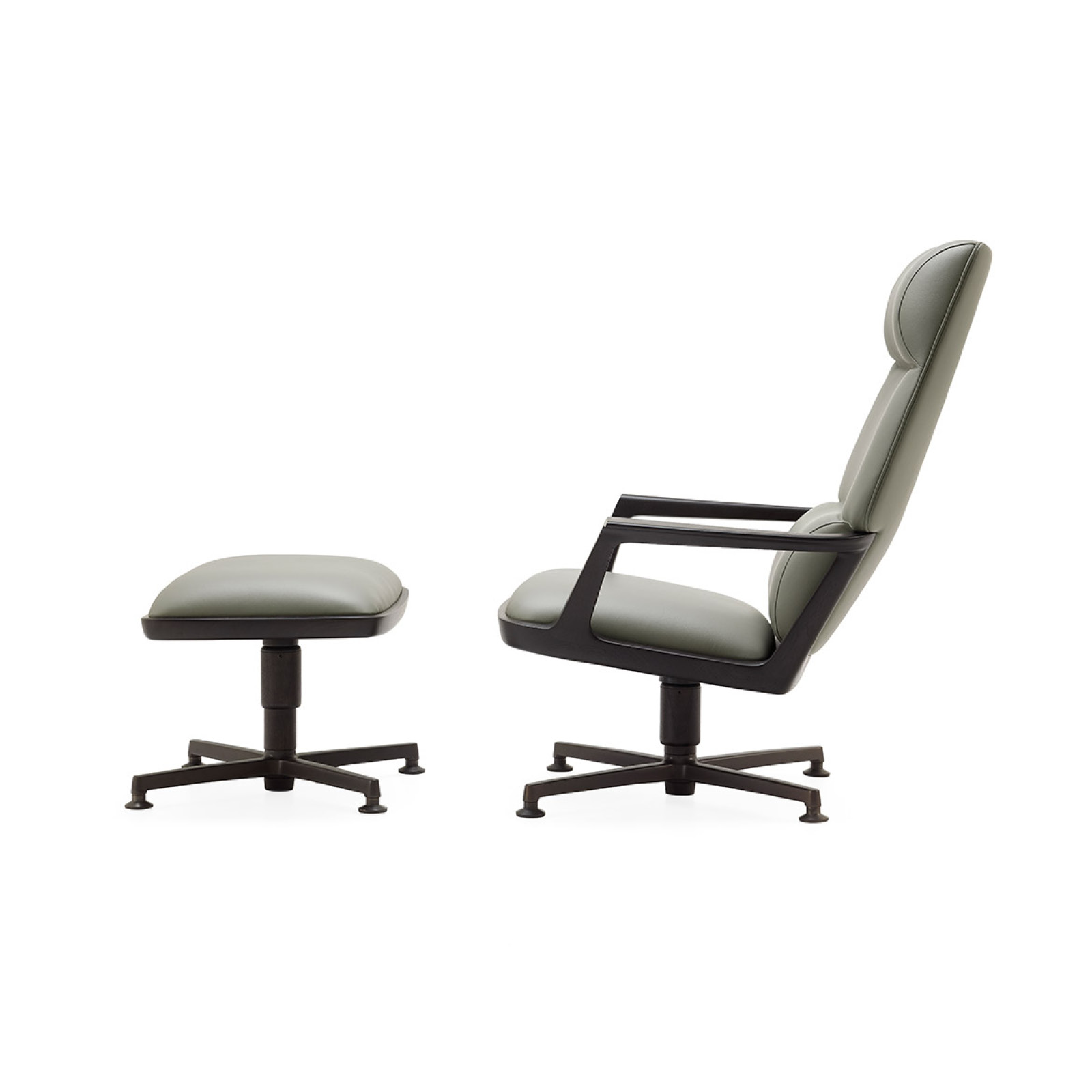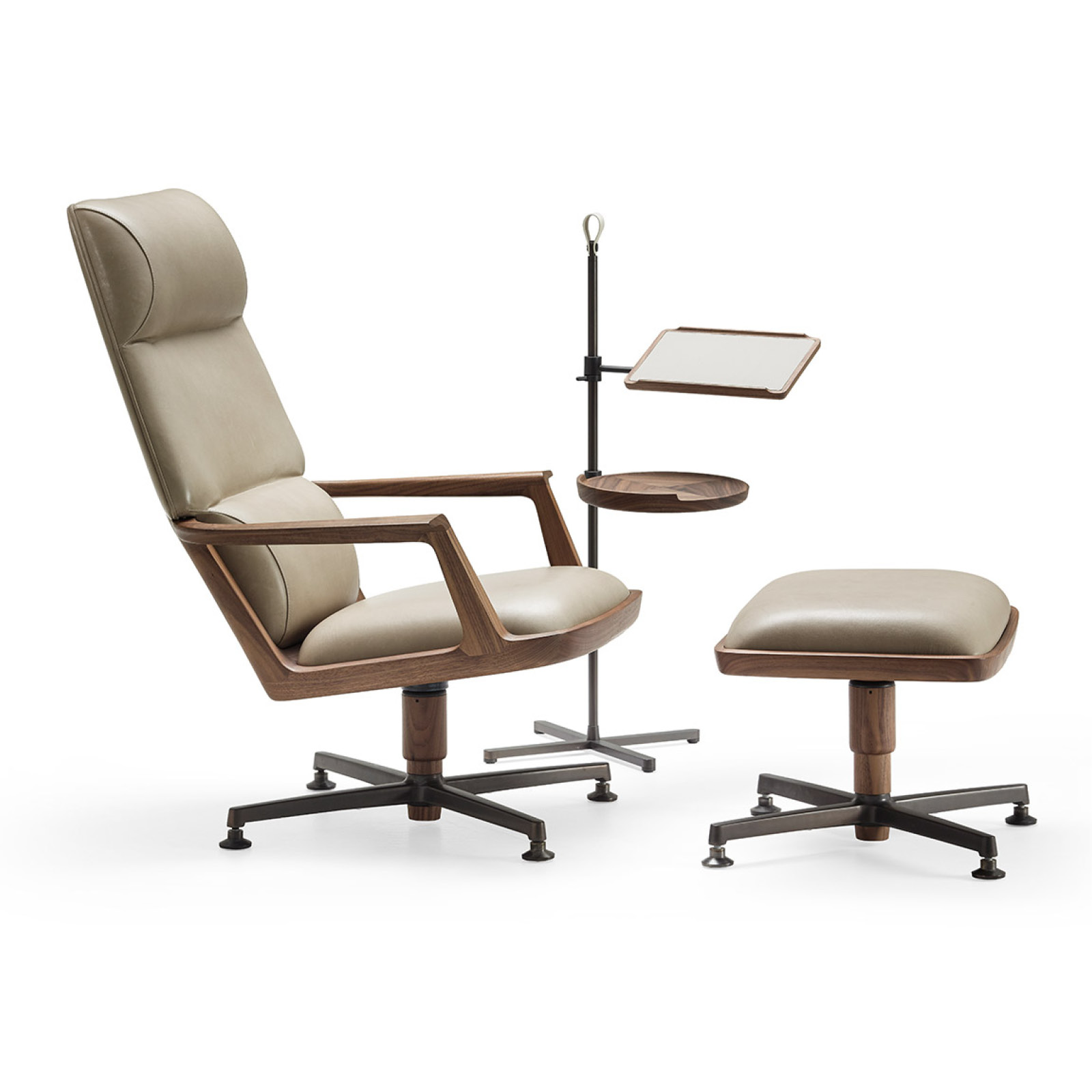 Pigra es un sillón que garantiza un alto grado de comodidad gracias al perfecto equilibrio entre la estructura y la parte tapizada. El sillón tiene un asiento amplio y un respaldo alto y alineado, acompañado de un reposapiés que permite una postura cómoda y relajada. que sostienen la estructura.
