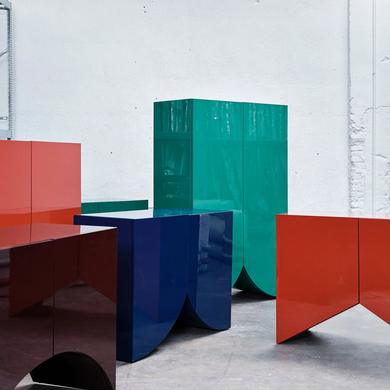 Bridges es una colección de armarios diseñada por Muller Van Severen. MVS desarrolló los armarios a partir de su serie de jarrones “Wave”. Las siluetas de los jarrones se incorporaron en armarios hechos a mano con bases recortadas únicas que trascienden la función. Sus colores refinados y acabados brillantes enfatizan la estructura, destacándose por su belleza escultórica. Tanto de manera individual como en conjunto, los armarios Bridges crean una arquitectura colorida, vibrante y espaciosa, y, por supuesto, llena de personalidad.