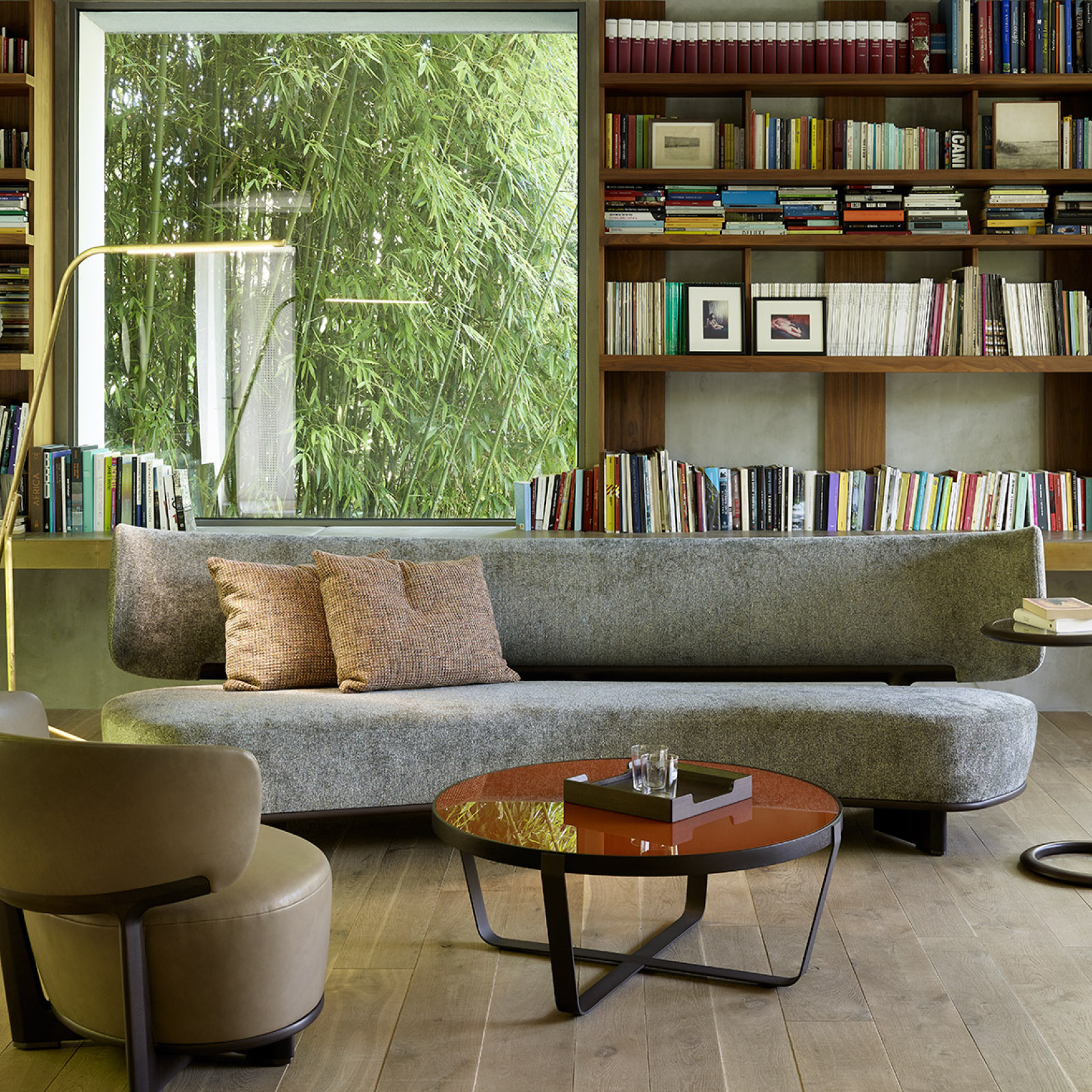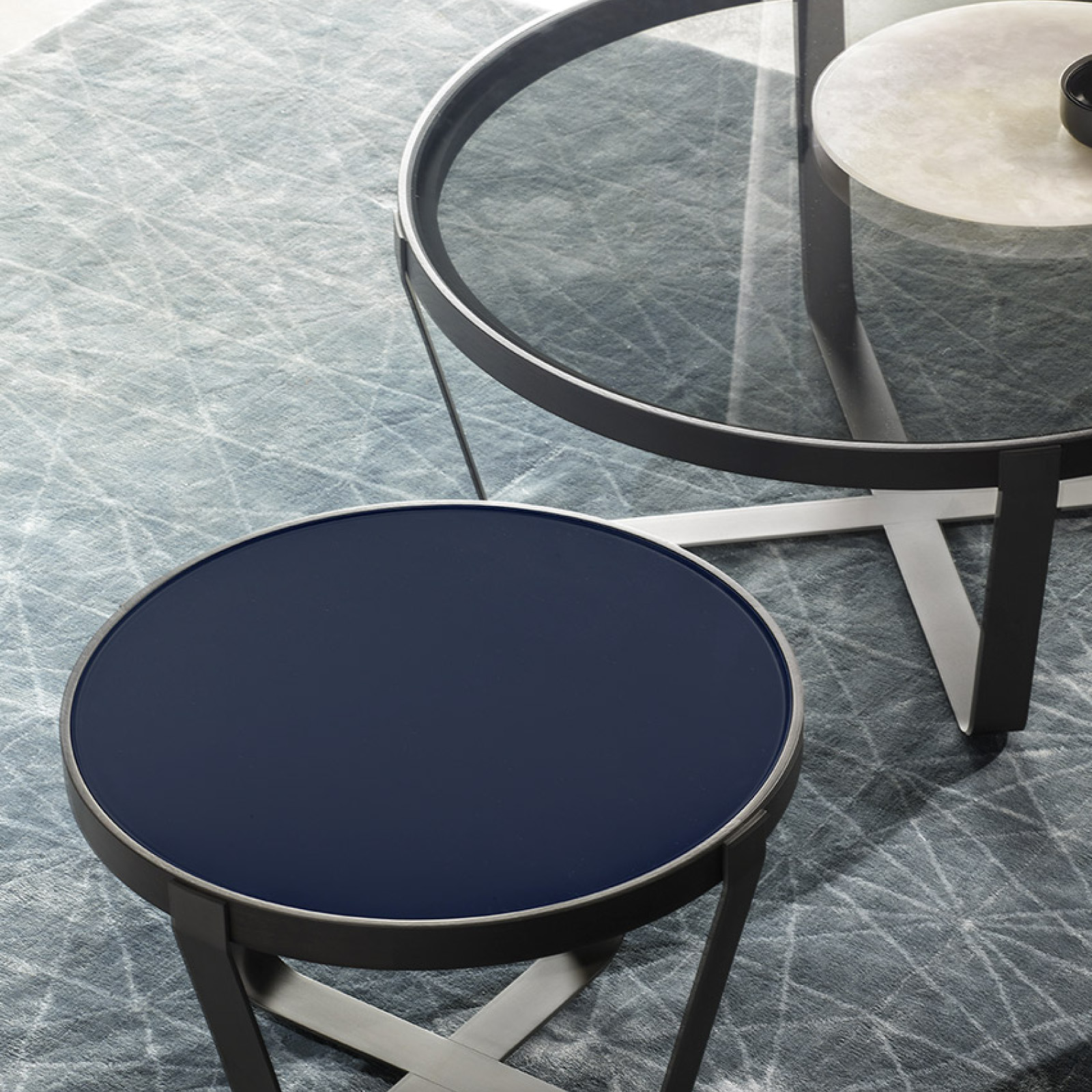 Crear elementos que se integren perfectamente en el espacio, combinando flexibilidad y estética, es uno de los retos del diseño. La mesa auxiliar DC, diseñada en 2010 por Vincenzo De Cotiis, es un excelente ejemplo de ello. Disponible en dos tamaños, se apoya en una base de latón bruñido. El marco de la tapa es de nogal americano macizo, mientras que la tapa puede ser de madera, latón bruñido o cristal transparente, bruñido o ahumado de 6 mm. Las marcas sinuosas pero limpias resaltan la calidad de los materiales. La mesa auxiliar DC amuebla y organiza el espacio del salón, sola o en composiciones múltiples.