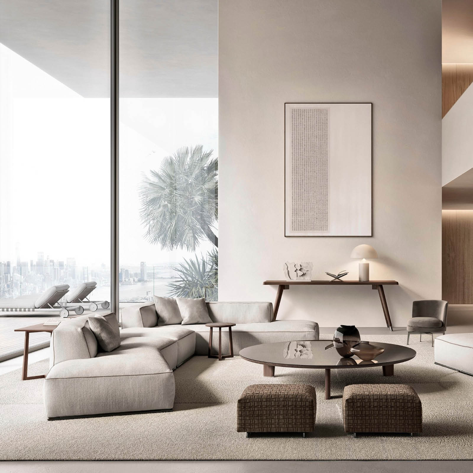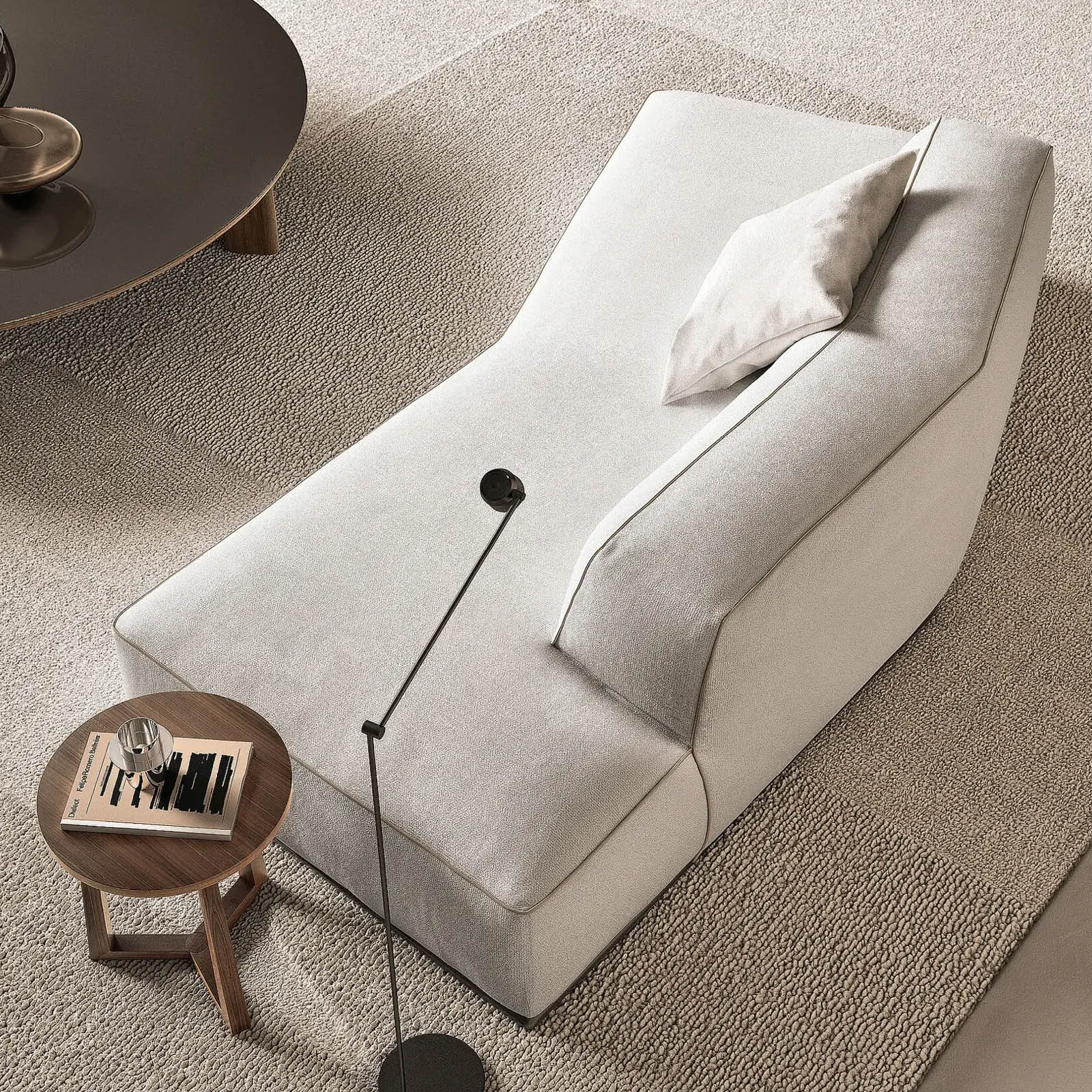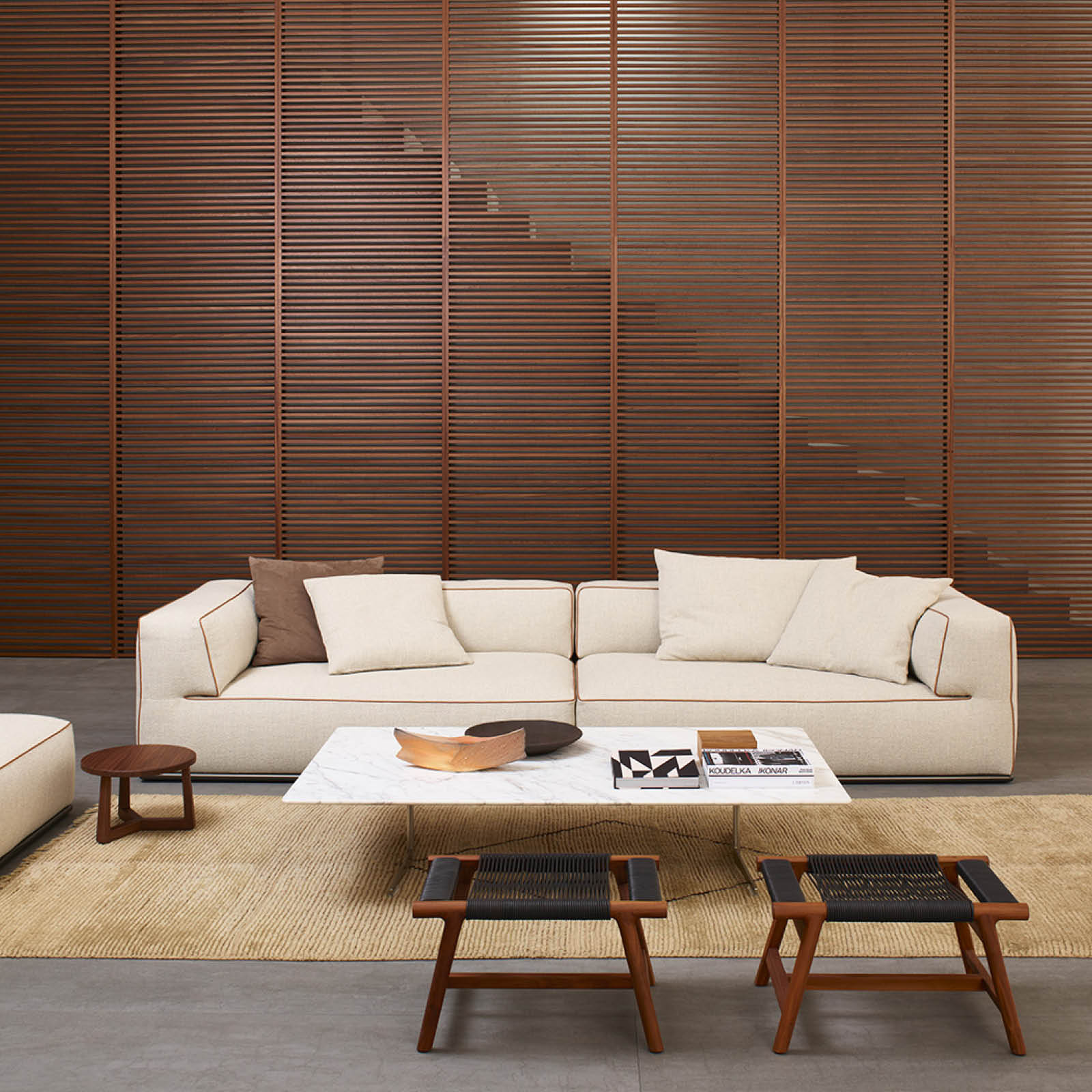 El sofá Perry permite sustituir el apoyabrazos tradicional por un exclusivo elemento contenedor fabricado en cuero, que permite guardar todo tipo de objetos aportando funcionalidad a la colección. La variedad amplia de módulos disponibles, que incluye elementos de asiento lineales, asimétricos, esquineros, pufs, chaiselongues, contenedores de cuero y mesas de centro de madera, permite crear una gran cantidad de configuraciones.