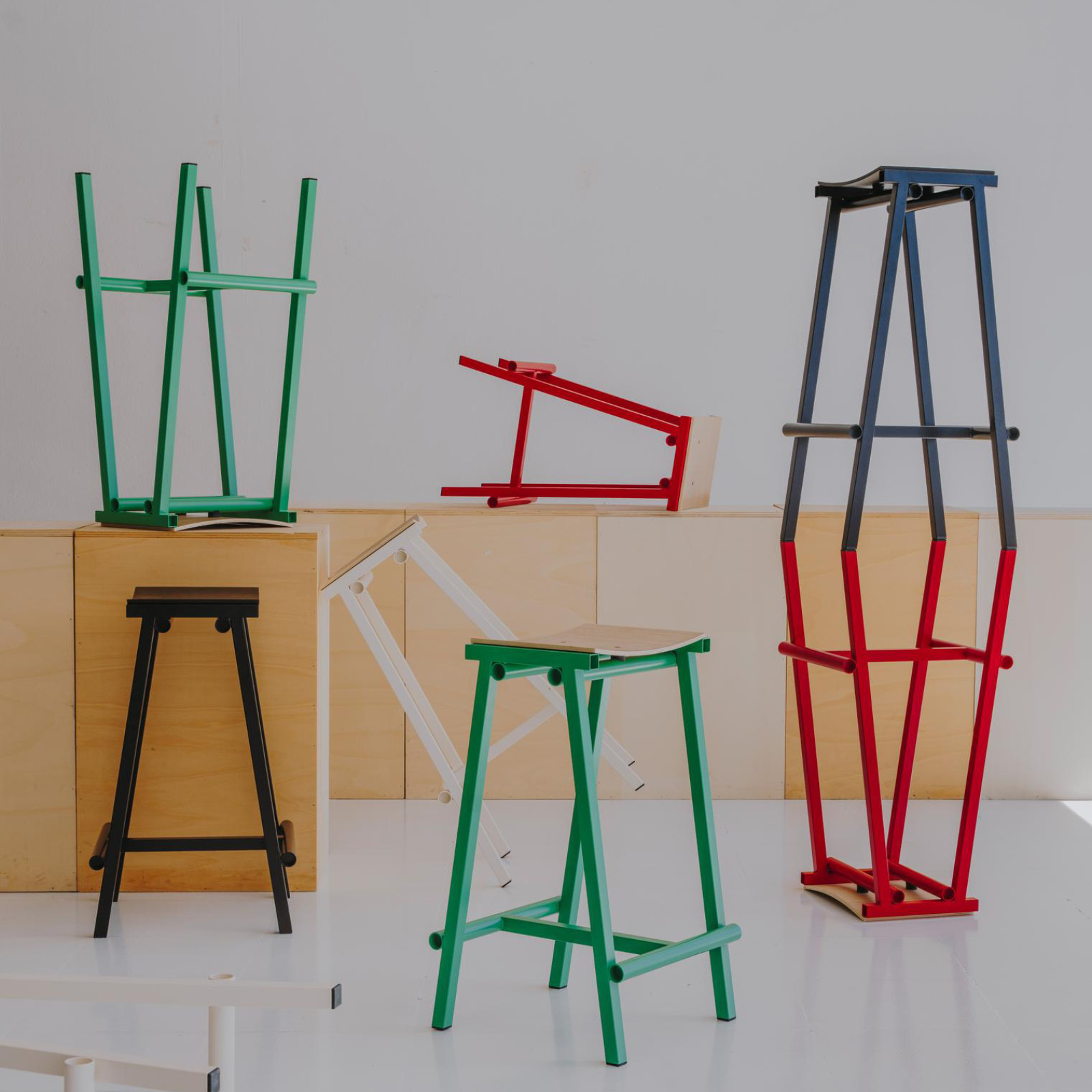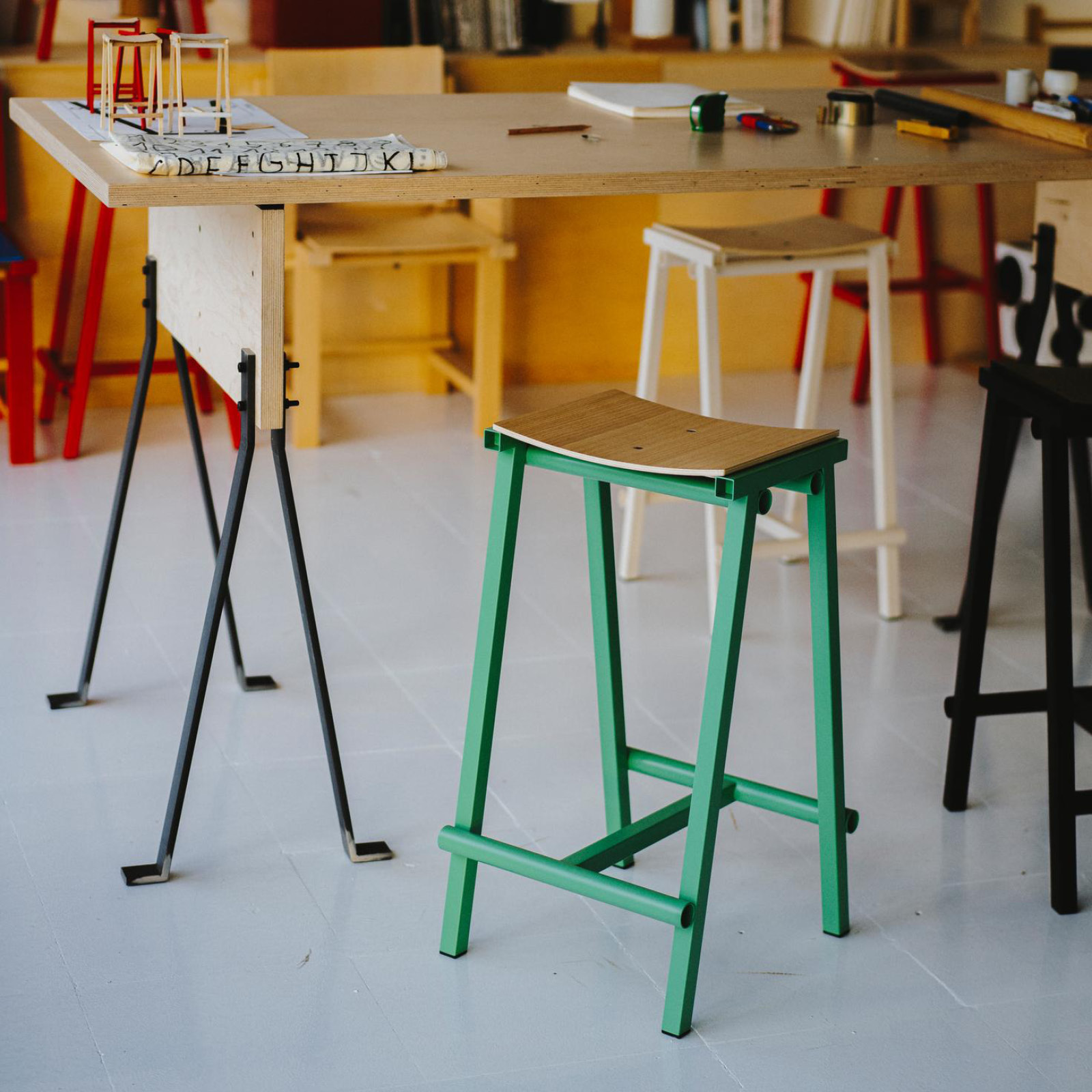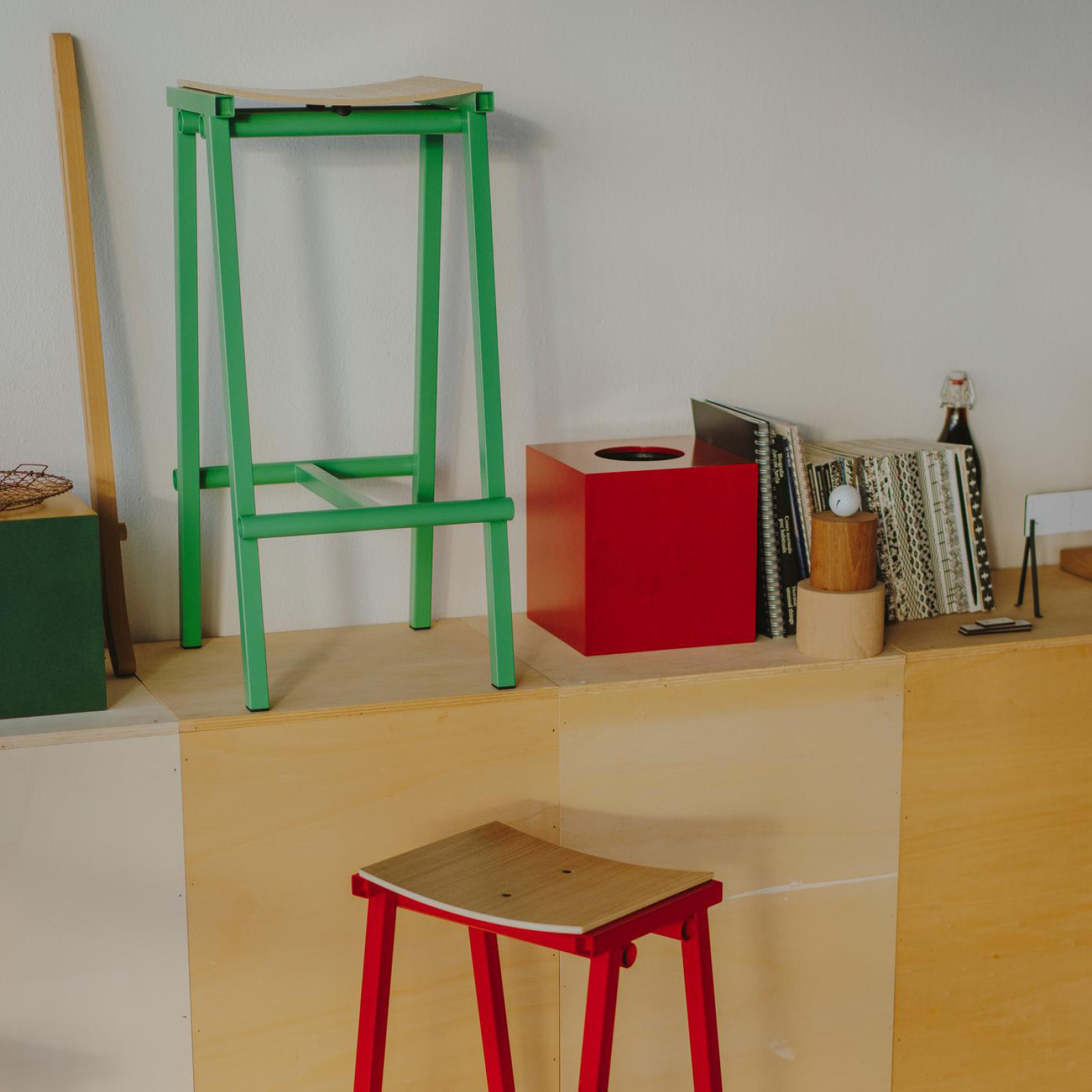 Diseñado por el español Marc Morro, el taburete de bar Taburete 8 utiliza un lenguaje de diseño directo para crear un taburete de bar funcional y robusto con una expresión distintiva pero minimalista. Tanto el asiento curvado de madera contrachapada como el armazón de tubo de acero se presentan claramente, con los distintos componentes realzados por su cruda simplicidad y el atrevido uso del color. Disponible en dos alturas, con el asiento de chapa de roble y el armazón de acero en distintos acabados y colores, Taburete 8 combina el cómodo asiento con la estética industrial para crear un taburete versátil y fácil de integrar en bares y restaurantes, así como en viviendas particulares.