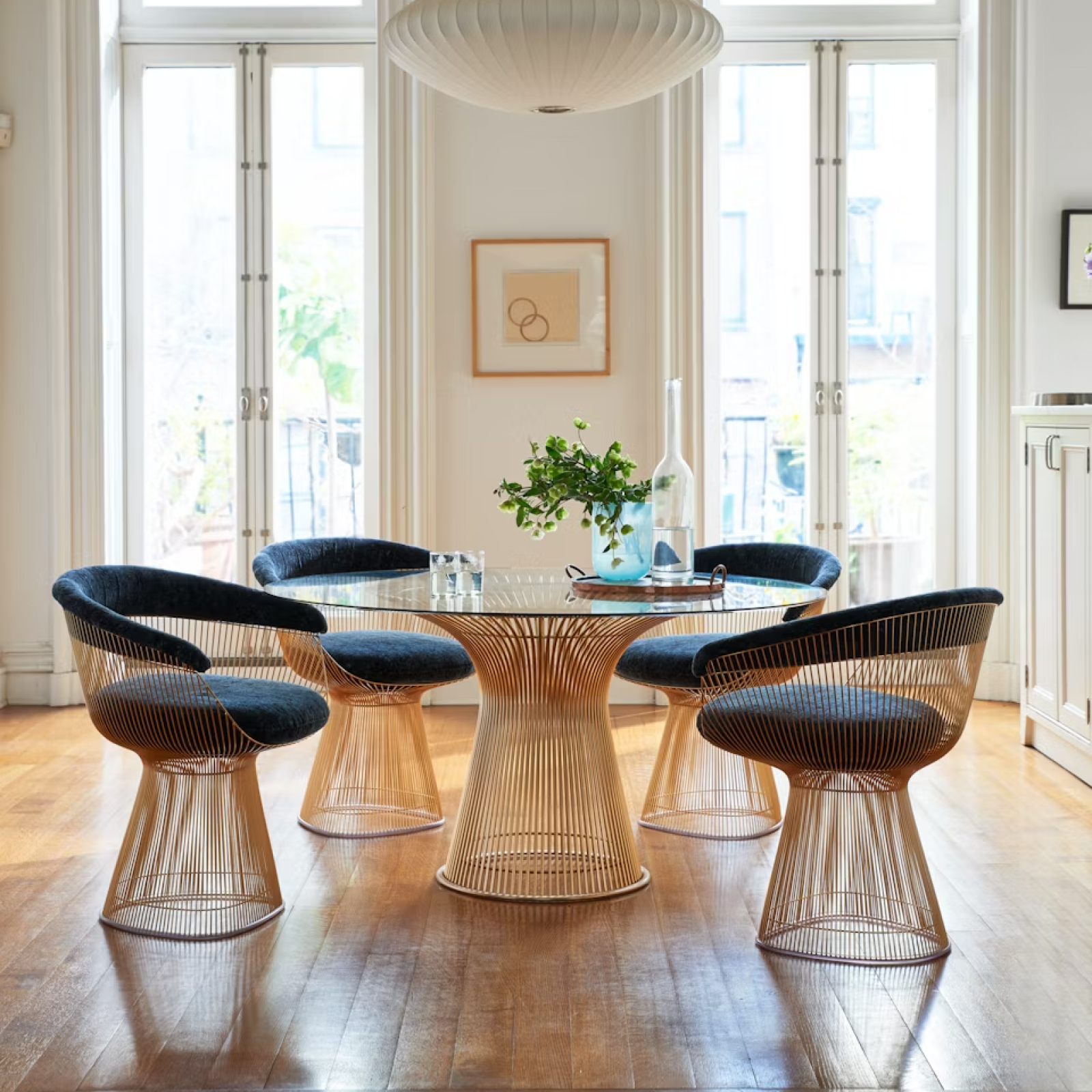 In 1962, Warren Platner approached Knoll with an idea. It was a difficult design, requiring precise alignment to ensure the bent steel rods were both structurally sound and visually pleasing. Four years later, this graceful masterpiece made its debut.