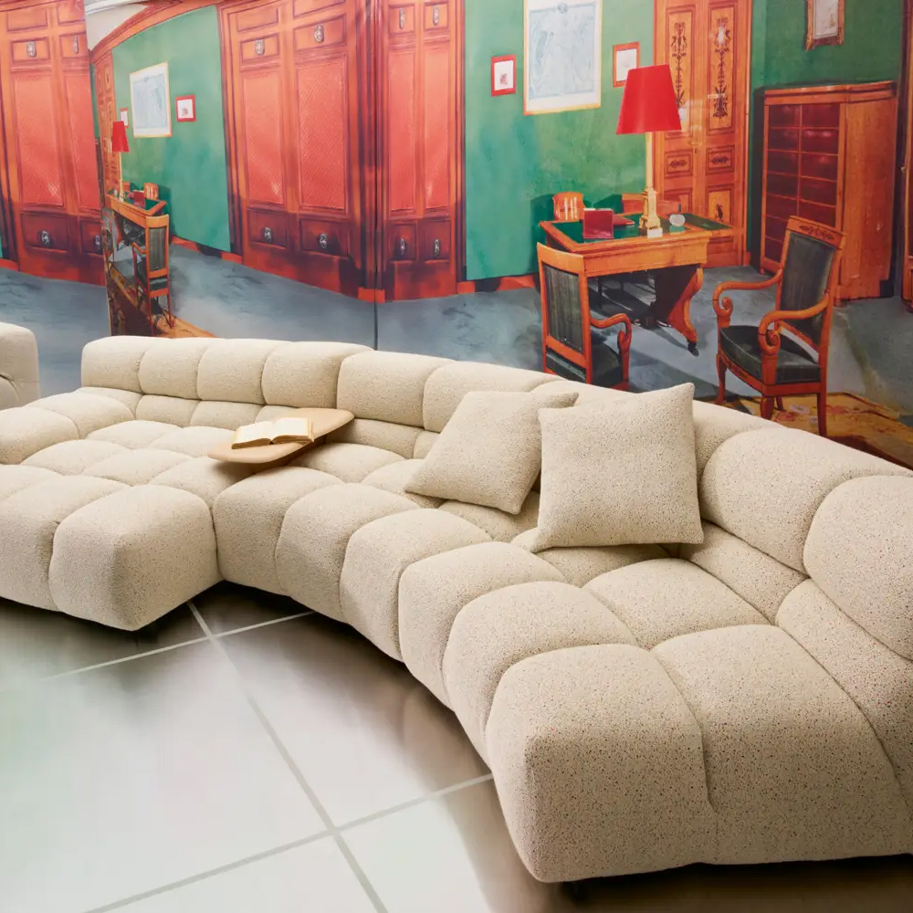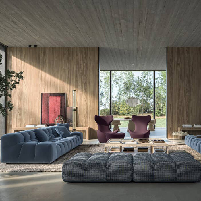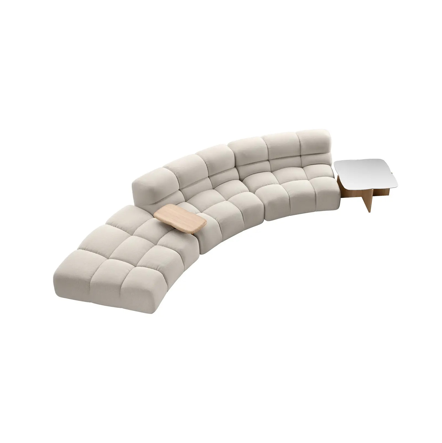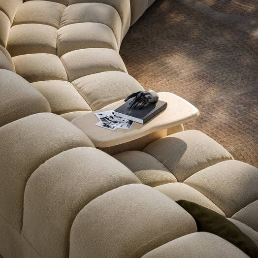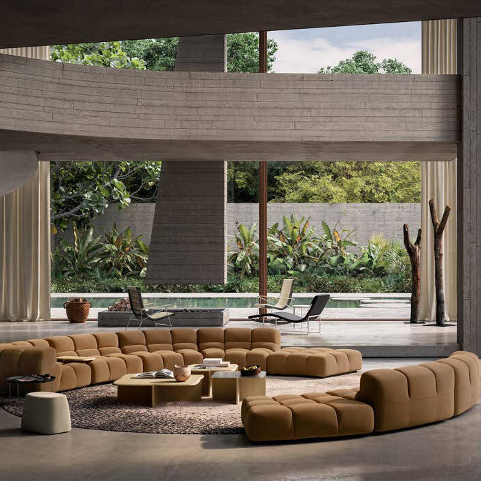 Tufty-Time 20 represents the contemporary evolution of Tufty-Time, the iconic sofa system designed by Patricia Urquiola in 2005. Twenty years after its launch, the system has been reinterpreted while maintaining the essential characteristics that have made it a great success, including modularity, enveloping comfort and compositional flexibility. The volumes, padding and seat height have been redesigned to offer even greater comfort, while the introduction of a curved module expands the system’s potential, giving rise to even more fluid and convivial configurations, ideal for both residential and contract spaces. Particular attention has been paid to the theme of circularity. Tufty-Time 20 is in fact fully disassemblable, ensuring that all the components can be given a second life at the end of the product’s life cycle.