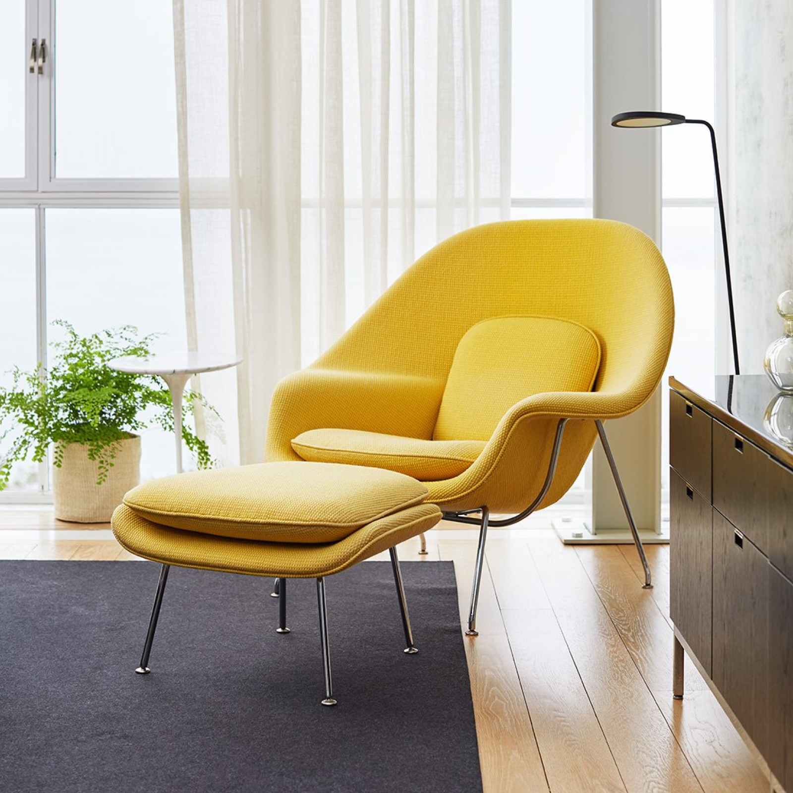 Designed by Eero Saarinen in 1948, the groundbreaking Womb Chair defied the era’s conventions of what a chair could be, both in the techniques and technology that allowed for its form, and ultimately, in its nonprescriptive function. Its acceptance of all postures speaks to the primal comfort of the womb—the security of which Eero believed people yearn. Upon its release, the designer remarked, “Now, more than ever, we need to relax.” His words, and the Womb Chair, remain as resonant today as ever.