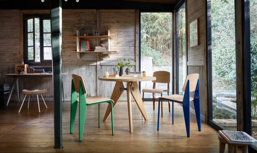 Entre las más emblemáticas destaca la silla Standard, una de sus creaciones más representativas. Diseñada en 1934, esta pieza resuelve de forma ingeniosa la distribución de cargas: patas traseras robustas en chapa de acero y patas delanteras ligeras en tubo, optimizando así la resistencia sin comprometer la estética. Su diseño sigue siendo vigente, elegante y radicalmente funcional.
