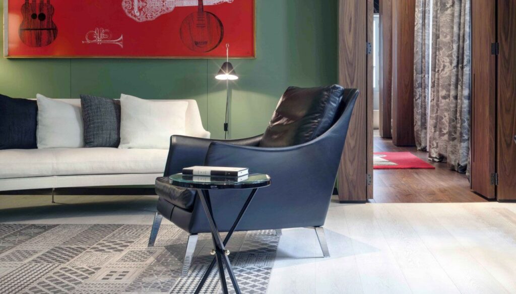 La butaca Boss proporciona una gran sensaciónd de comodidad. Los cojines del asiento y del respaldo, con su generoso relleno de plumón de ganso, ofrecen un excelente apoyo para la espalda. Disponible en la versión de pie central, giratorio o la versión con patas.