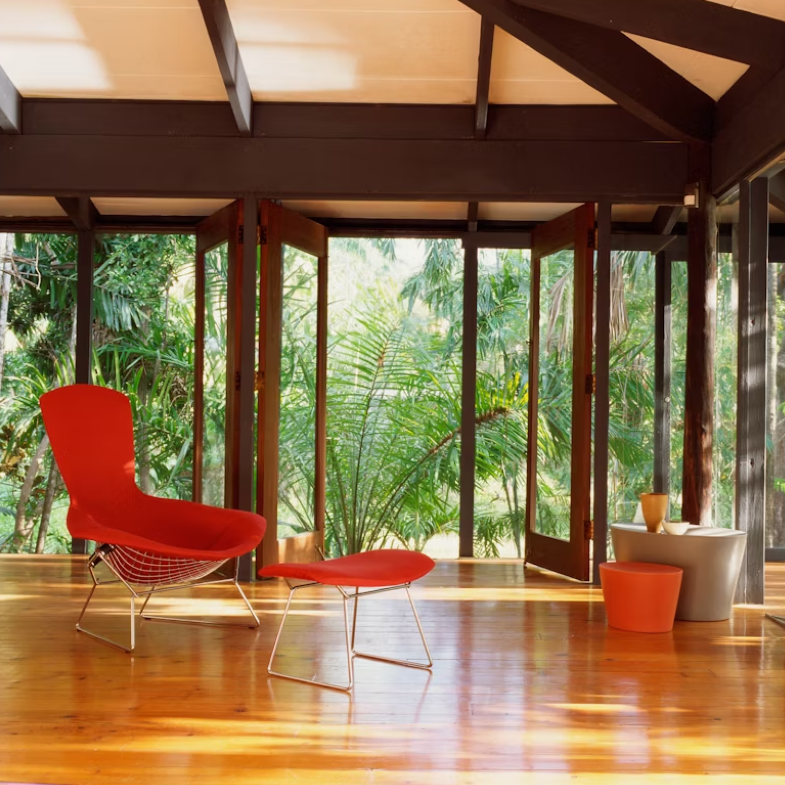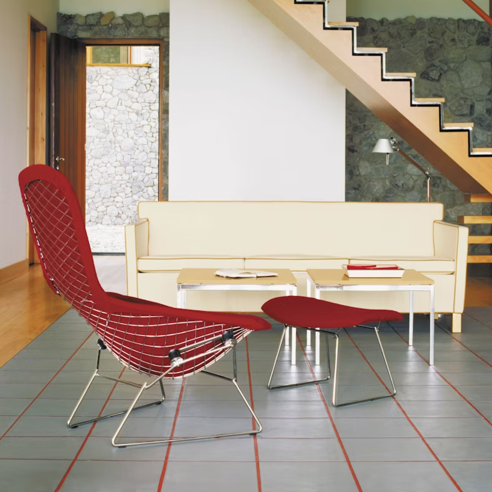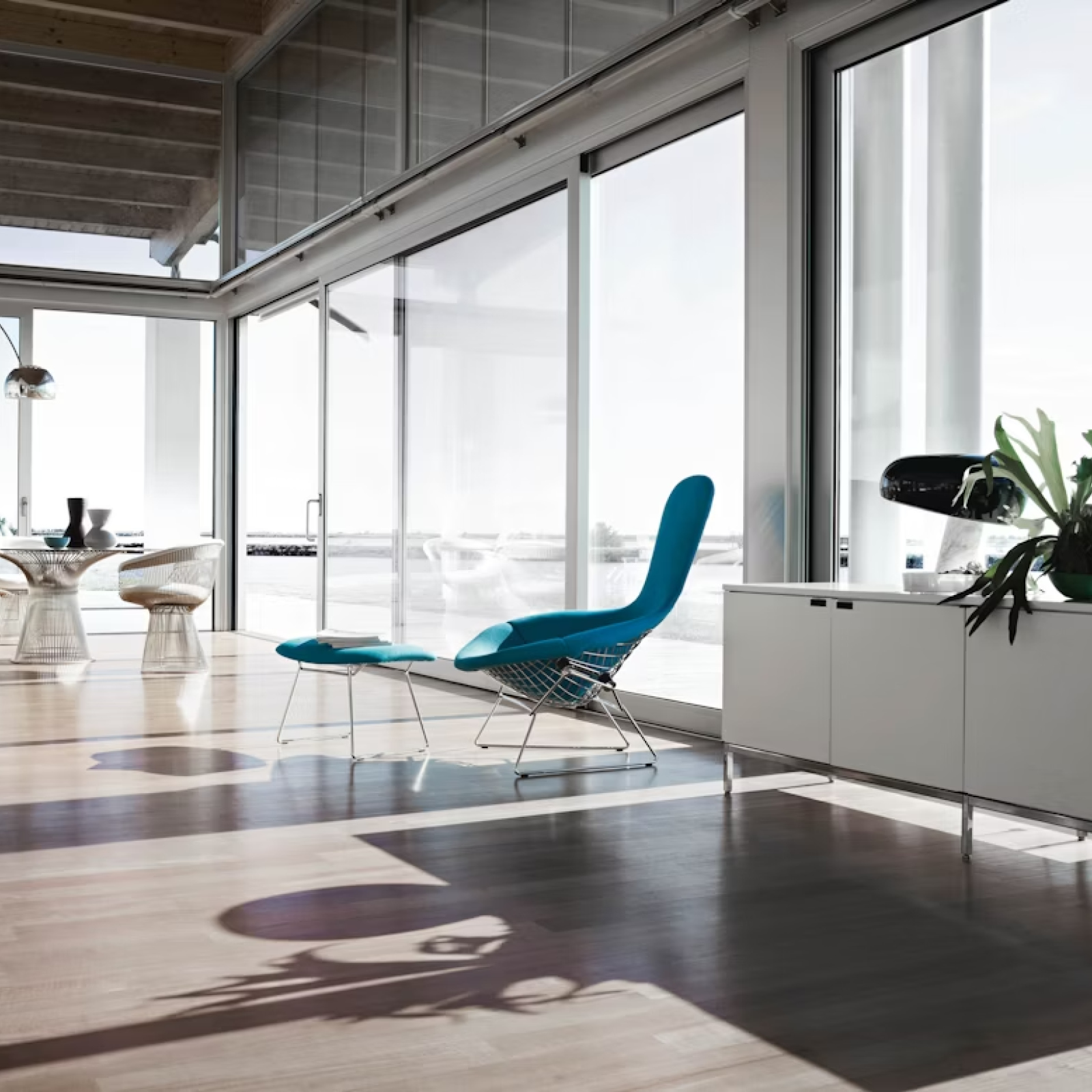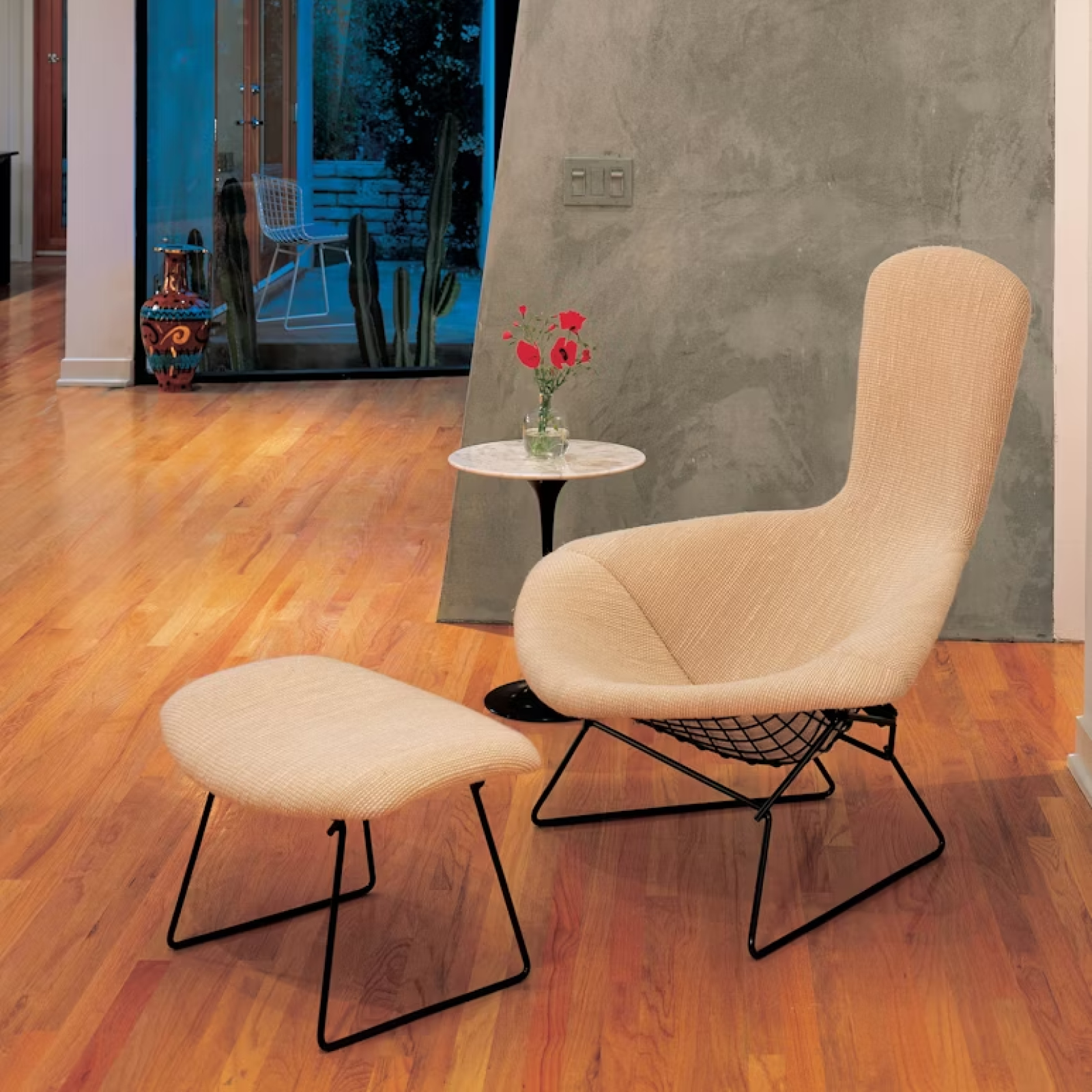 La Butaca Bird es un asombroso estudio del espacio, la forma y la función, creado por uno de los grandes escultores del siglo pasado. Al igual que Saarinen y Mies, Bertoia encontró una gracia sublime en un material industrial, elevándolo más allá de su utilidad habitual hasta convertirlo en una obra de arte. Las sillas de alambre de Harry Bertoia se encuentran entre los logros más reconocidos del diseño moderno de mediados de siglo y son un orgullo dentro del legado de Knoll.
