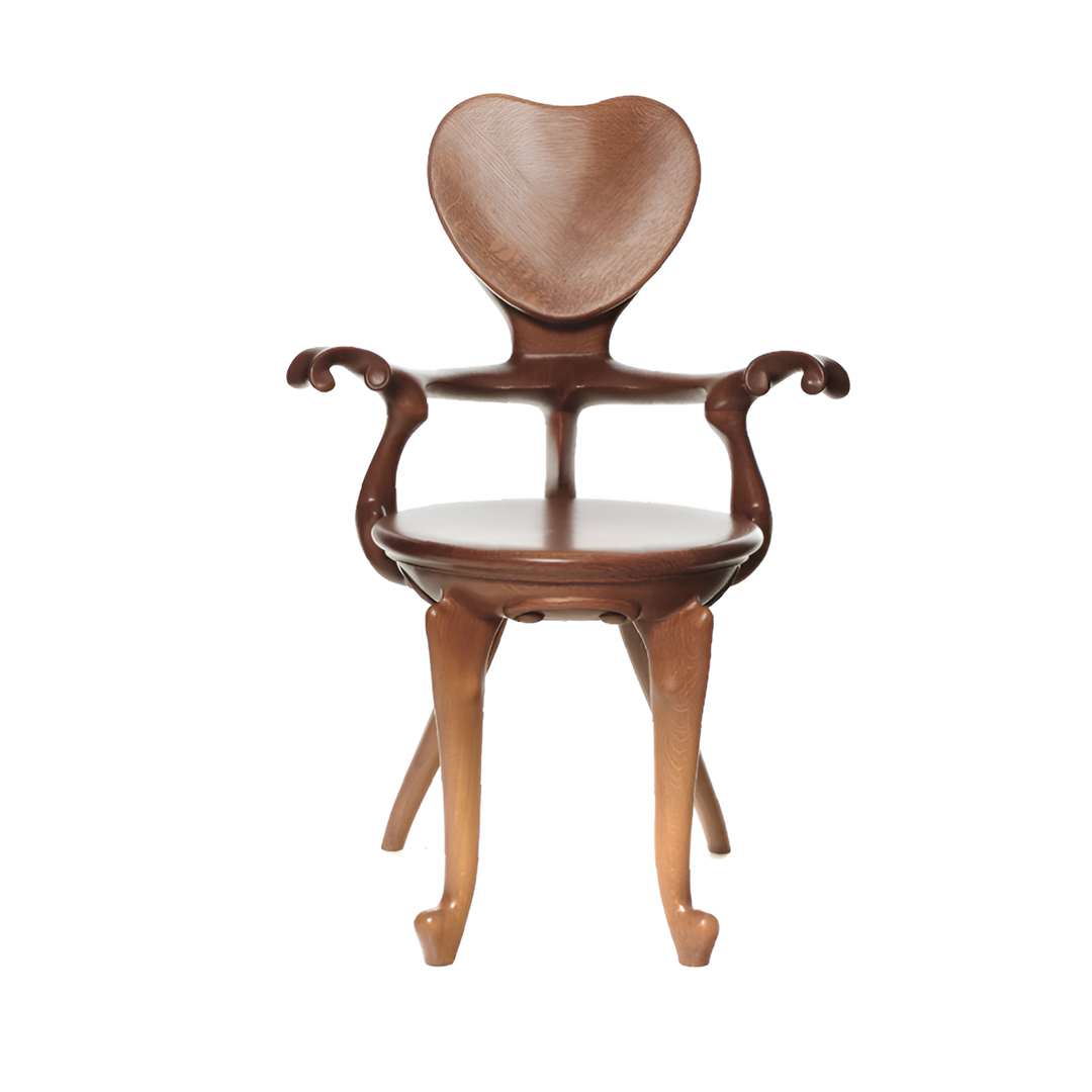 Antoni Gaudí es admirado globalmente más allá del ámbito de la arquitectura, adentrándose en piezas como la butaca Calvet. Diseñado entre 1900 y 1901 para la Casa Calvet en Barcelona, el sillón de roble está elaborado artesanalmente del mismo modo que en la época de Gaudí. Cinco piezas se ensamblan para formar el grueso respaldo, los brazos curvados y el respaldo en forma de corazón de la estructura tallada, que explora la singular creatividad y la fuerza expresiva de Gaudí.
