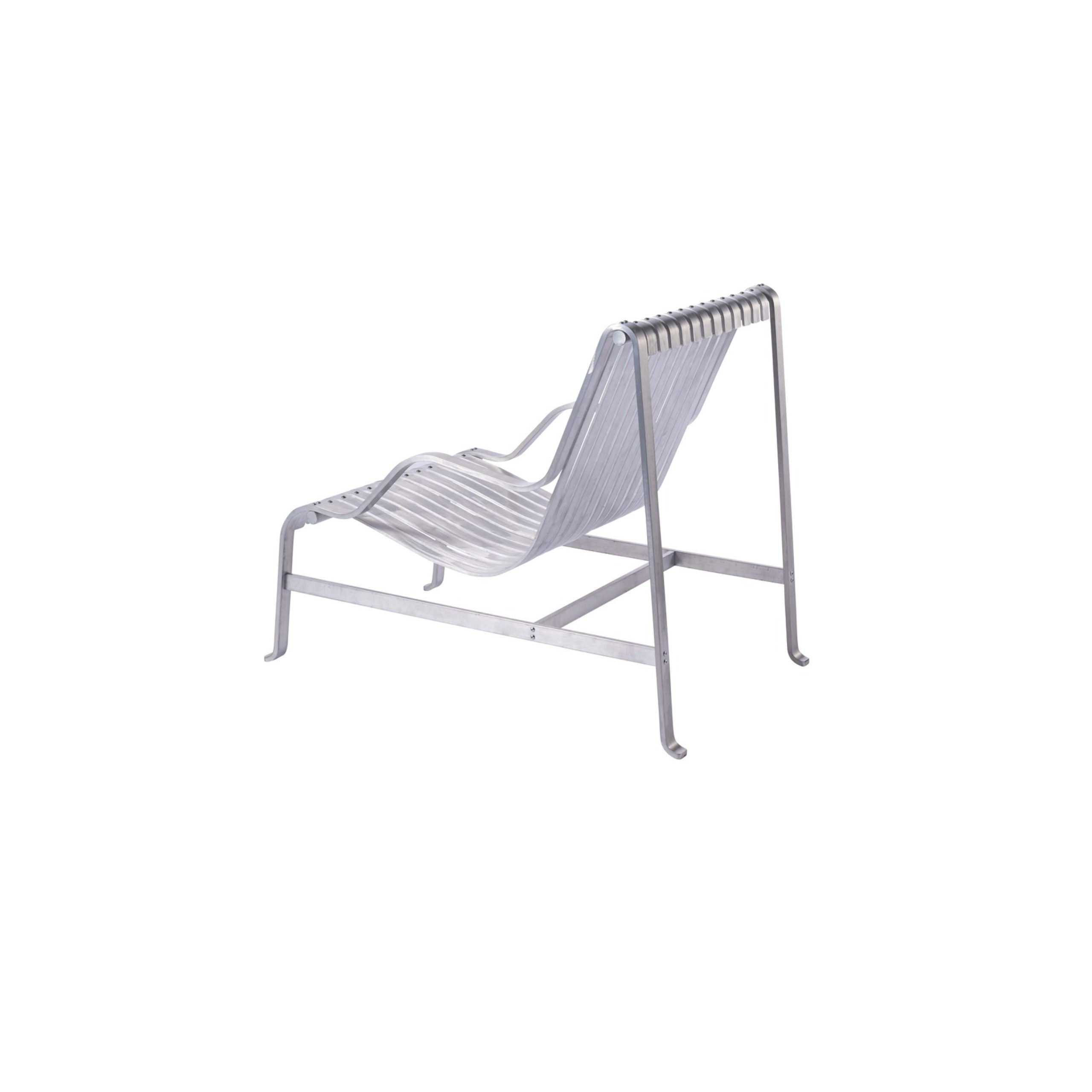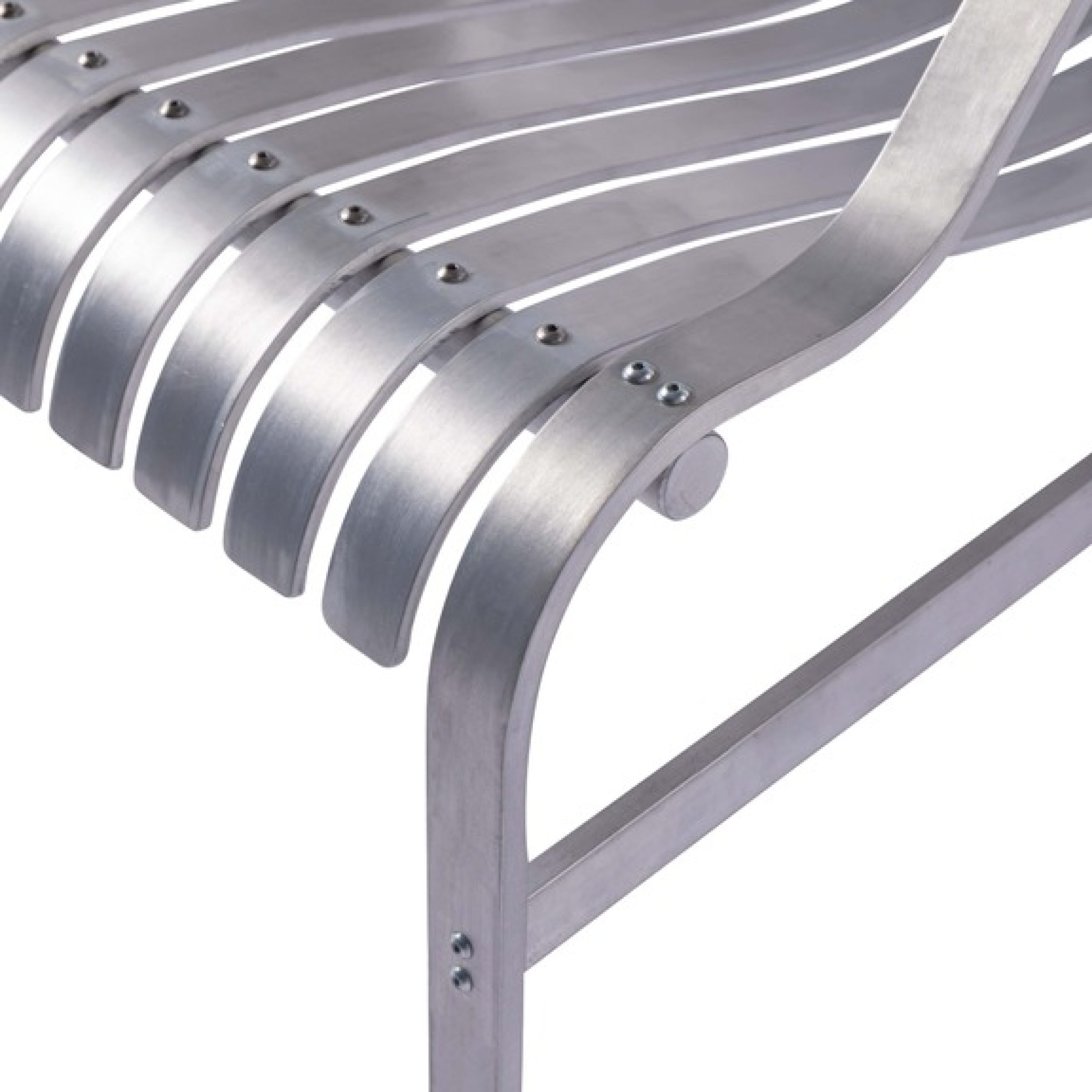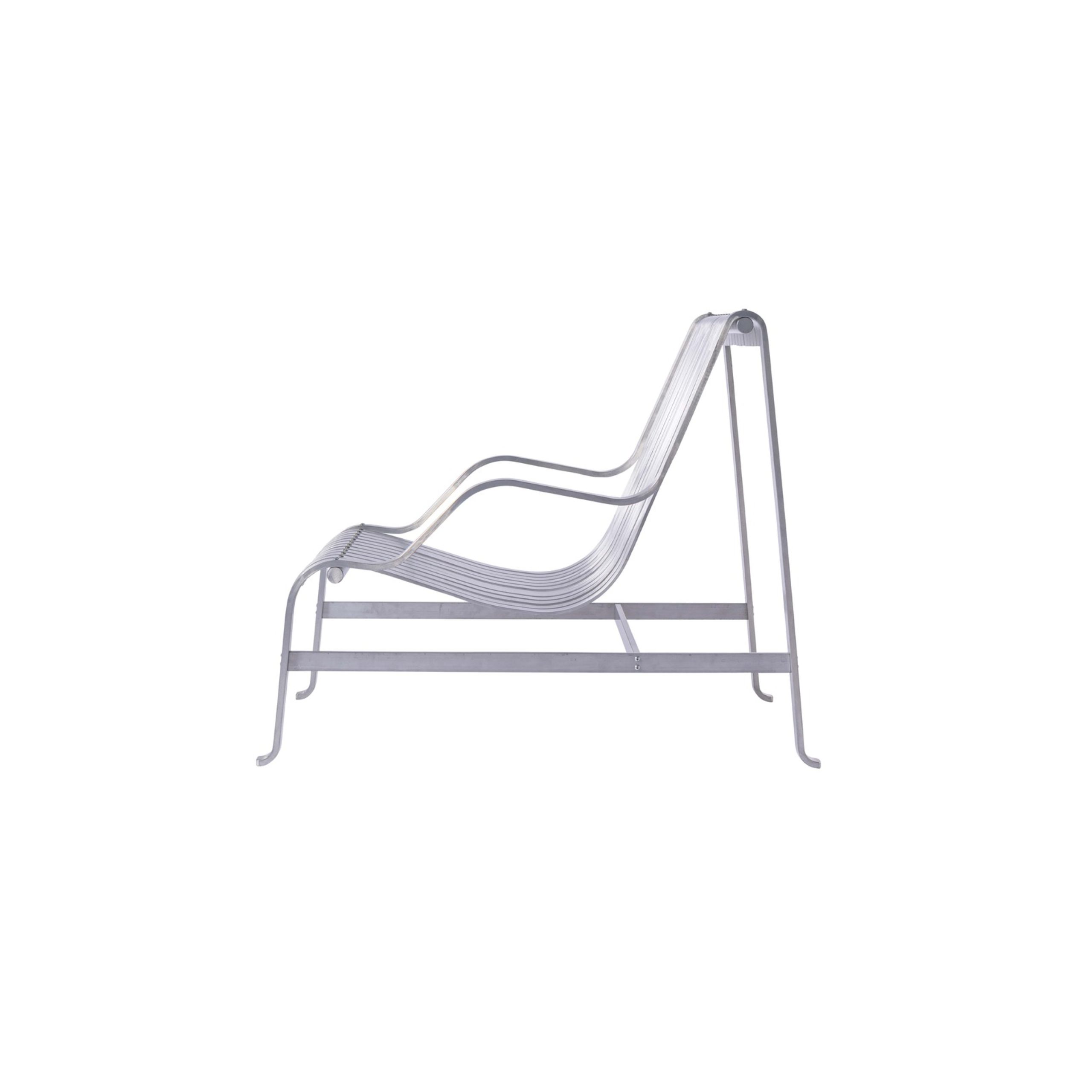 La estructura es enteramente de aluminio con acabado transparente, que revela los signos del cepillado a mano, y todos los elementos del sillón están sujetos con tornillos de acero inoxidable, que confieren al producto un aspecto extremadamente industrial. Vendicari Silver es una pieza muy icónica, perfecta para un público en busca de un producto exclusivo que mejore su valor con el paso del tiempo.