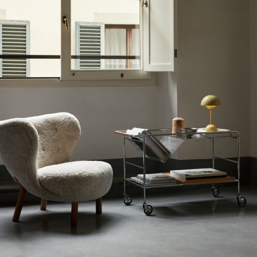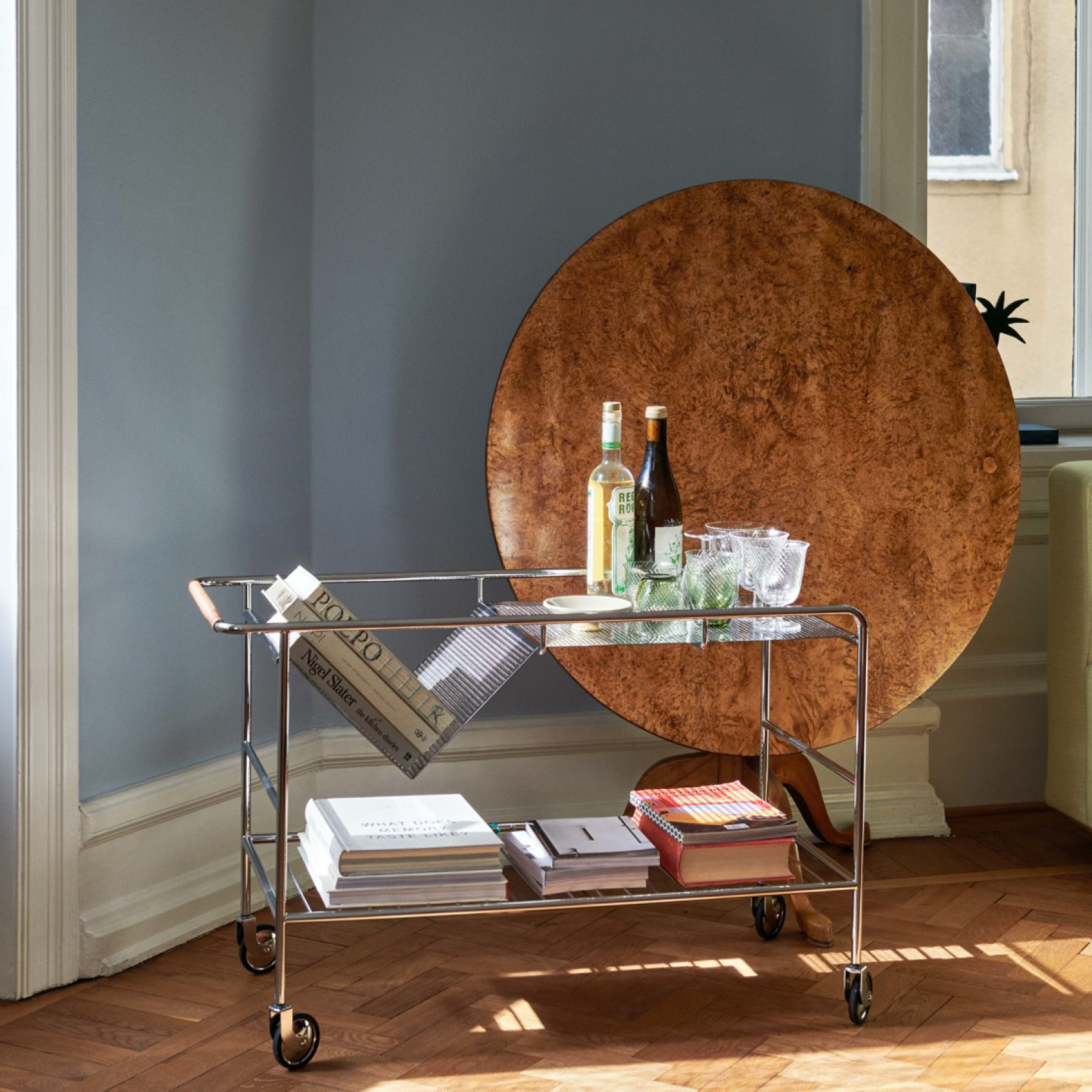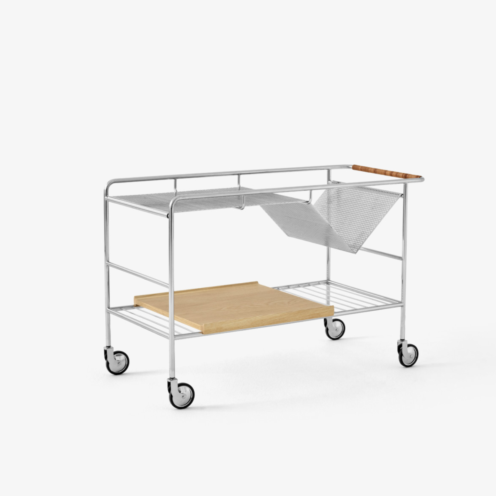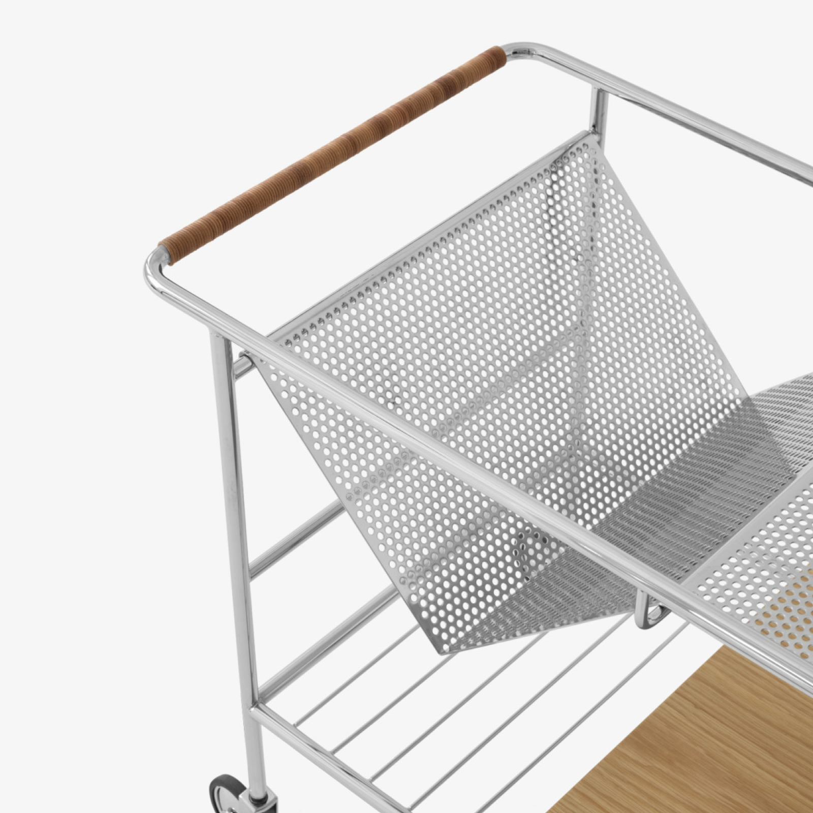 Inspirado en el «caos creativo» de trabajar desde casa, Note Design Studio decidió crear una unidad de almacenamiento que albergara su colección de revistas, dibujos y objetos. El resultado fue un elegante carrito con un diseño distintivo en forma de V incorporado en su superficie, que permite almacenar y exhibir libros apilados fácilmente.
