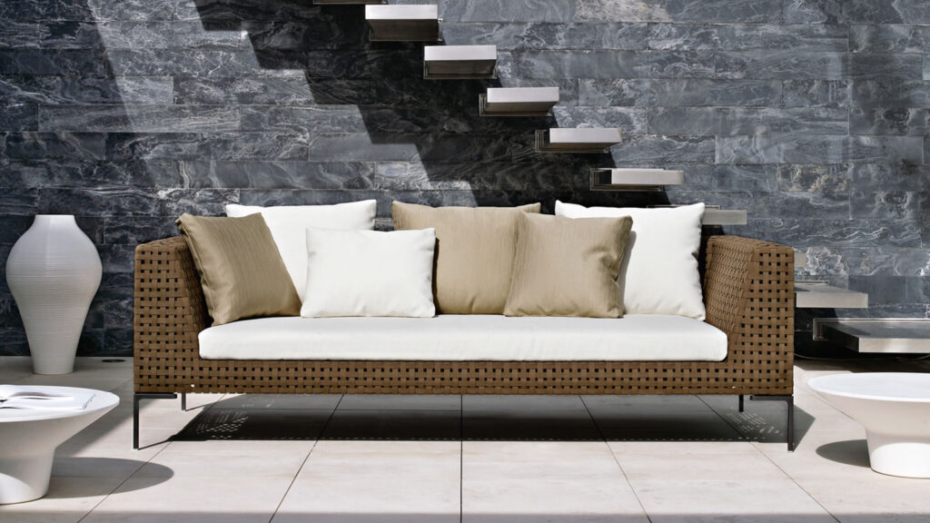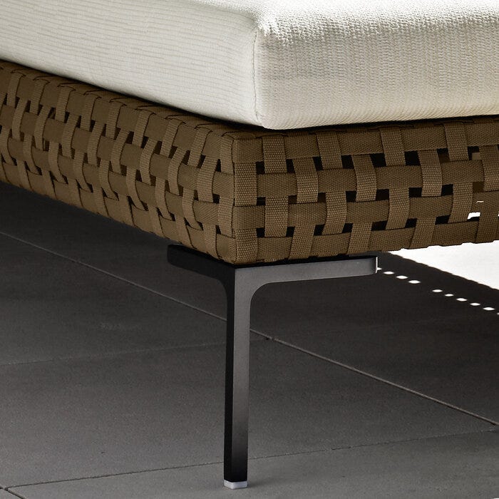 La versión para exteriores del sistema de sofás Charles, un éxito de ventas durante mucho tiempo para B&B Italia, conserva la calidad del proyecto de diseño de interiores y las características que lo convirtieron en un clásico del puro gusto contemporáneo. De hecho, el sistema presenta el mismo marco delgado, flexibilidad y diseño característico de los pies en forma de «L» invertida. Con una estética rigurosa y atemporal, destaca por su ligero marco interior de aluminio y una superficie exterior creada por una cinta de polipropileno entrelazada abierta.