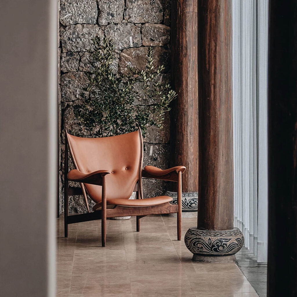 La emblemática butaca Chieftain es una de las obras maestras absolutas de Finn Juhl, que representa el punto culminante de su carrera como diseñador de muebles. En su introducción en 1949, la silla marcó una renovación de la tradición danesa en el diseño de muebles. Hoy en día, se percibe como uno de los exponentes más importantes del movimiento Danish Modern en los Estados Unidos durante la década de 1950. La silla está disponible en nogal o roble con tapicería en tipos de cuero seleccionados y exclusivos.