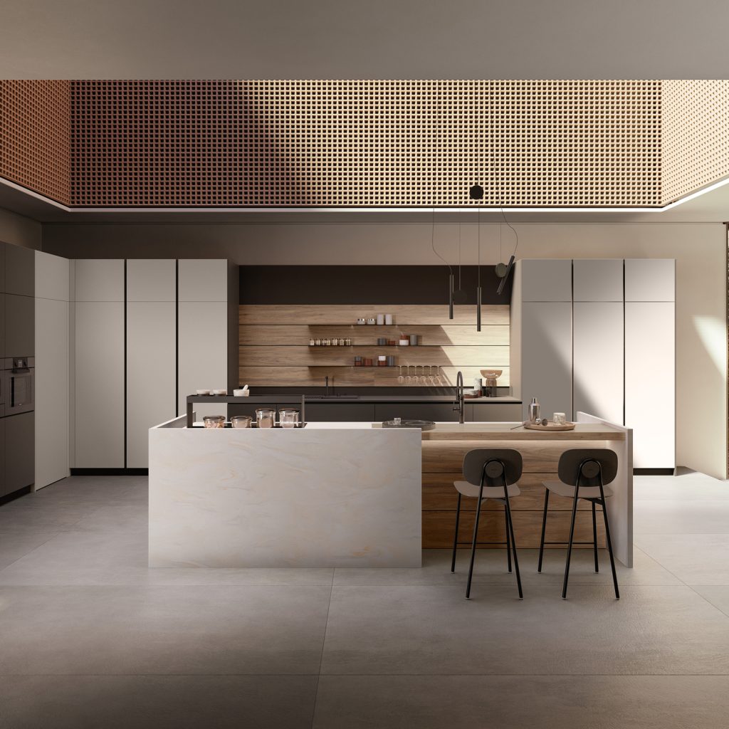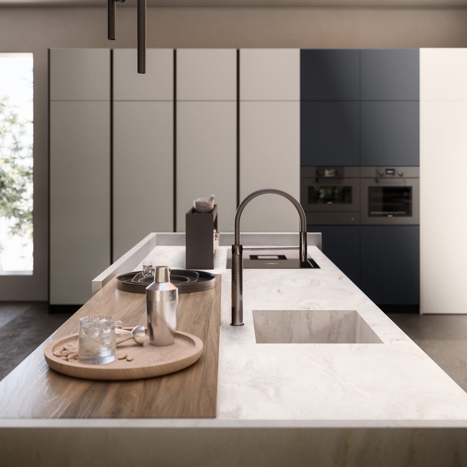 Los rasgos firmes y fuertes de la cocina Kappa diseñan espacios modernos y refinados donde medirse con la comida y la hospitalidad, interpretando la exigencia de ambientes cada vez más complejos y representativos, conformes con los nuevos estilos. Una elección esmerada y limitada de acabados para unos modelos completos y que pueden valorizarse con módulos equipados, soluciones funcionales y amplios contenedores, capaces de ofrecer la armonía total entre los espacios y la emotividad.