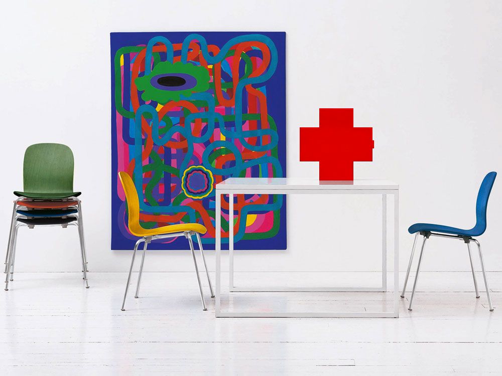 Diseñado para almacenar medicamentos, el botiquín Cross de Thomas Eriksson es de pared y está disponible con un acabado barnizado mate, en rojo, azul y blanco.