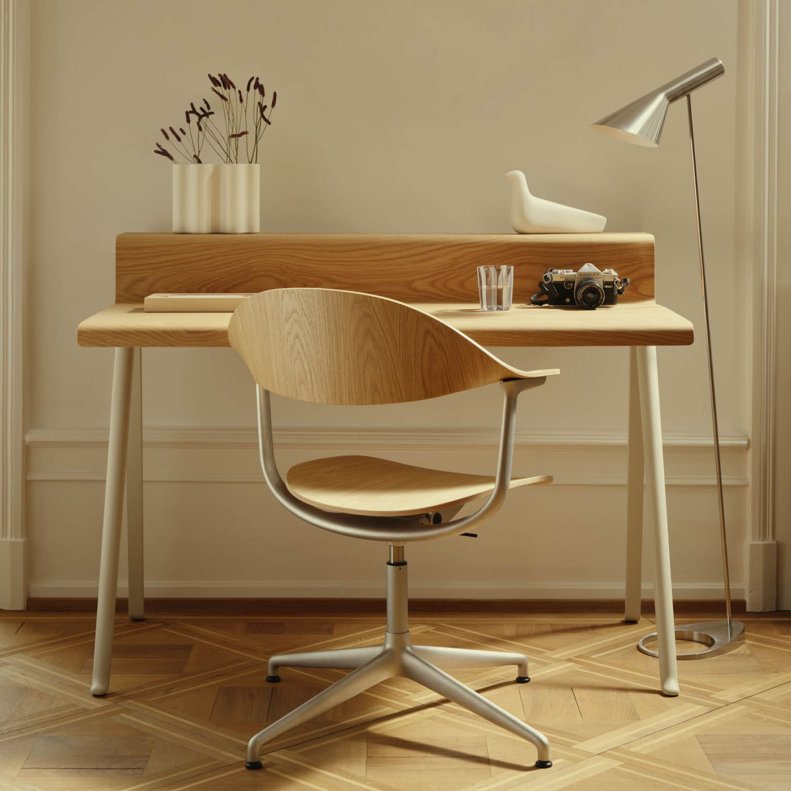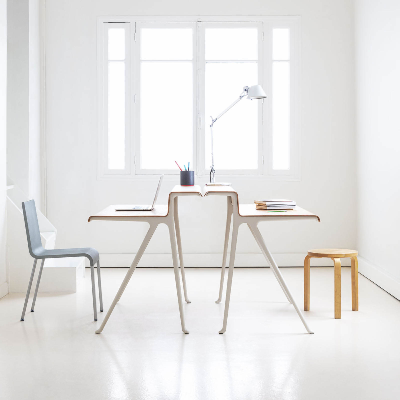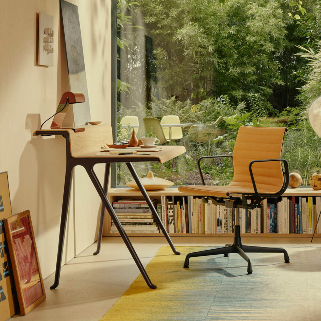 Además de dedicarse a proyectos de diseño, Ronan Bouroullec también es un artista que hace dibujos intrincados en los que dibuja a mano secuencias intuitivas de líneas con un pincel de punta de fieltro de caligrafía japonesa. Los contornos de Courier se pueden interpretar como una expresión de esta vertiente artística, pero también evidencian el talento de Bouroullec para la forma y la composición, así como su pericia técnica. La mesa Courier combina a la perfección dos materiales de alta calidad, la madera y el aluminio, para crear un diseño distintivo pero discreto.