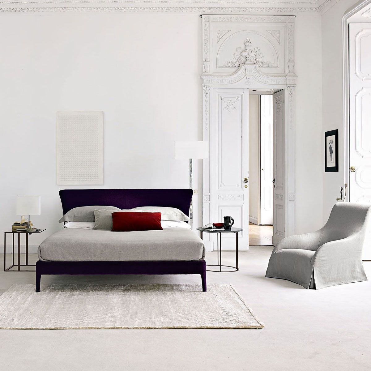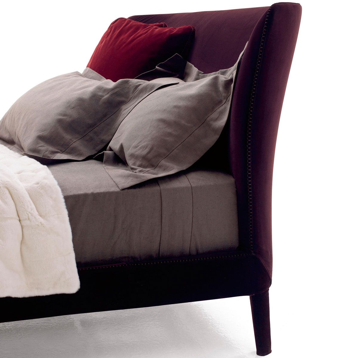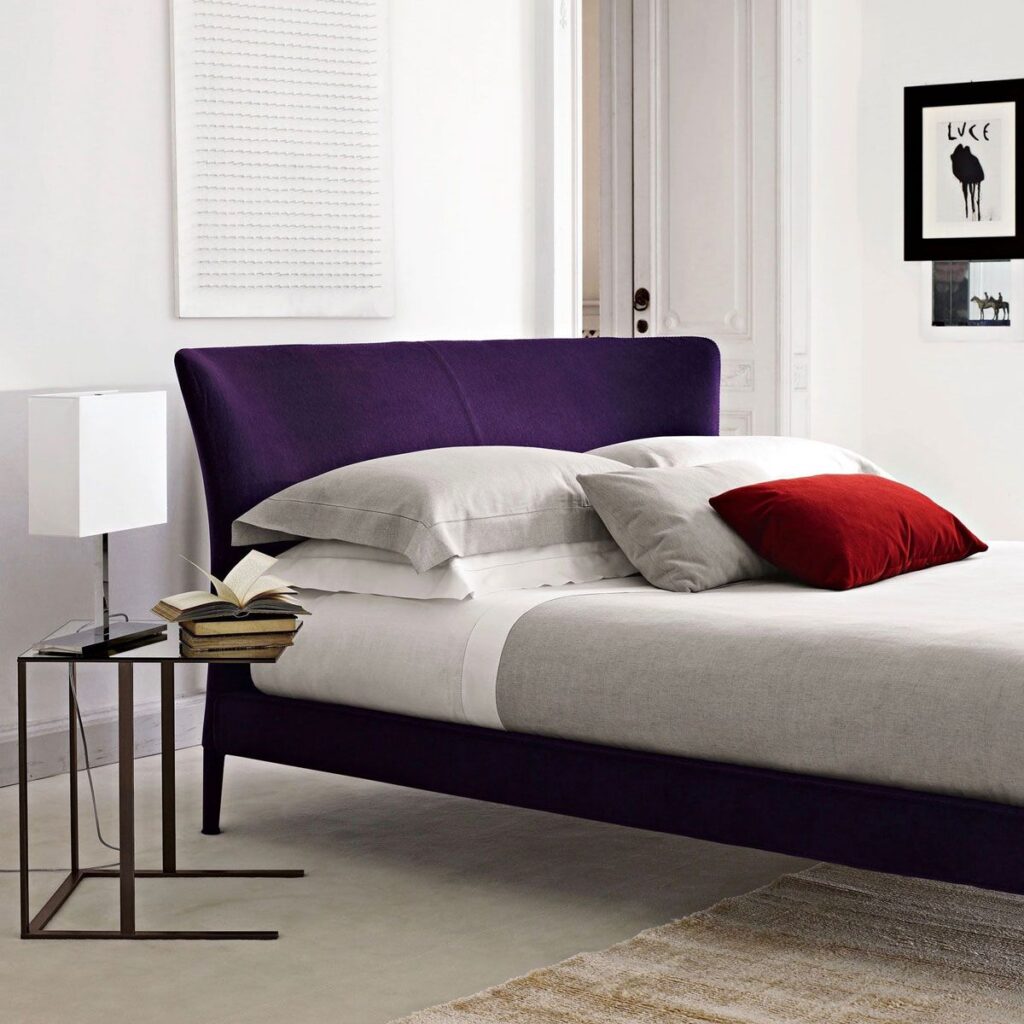 Cama totalmente tapizada, con un diseño de cabezal elegante, de formas sinuosas. Aporta una comodidad añadida con 02 cojines de respaldo. Desenfundable.