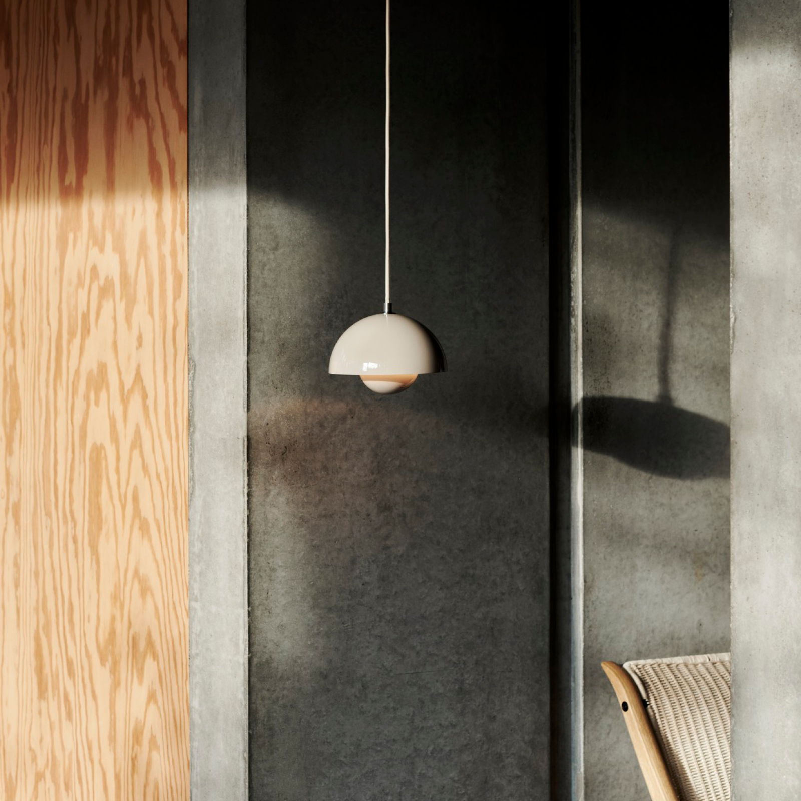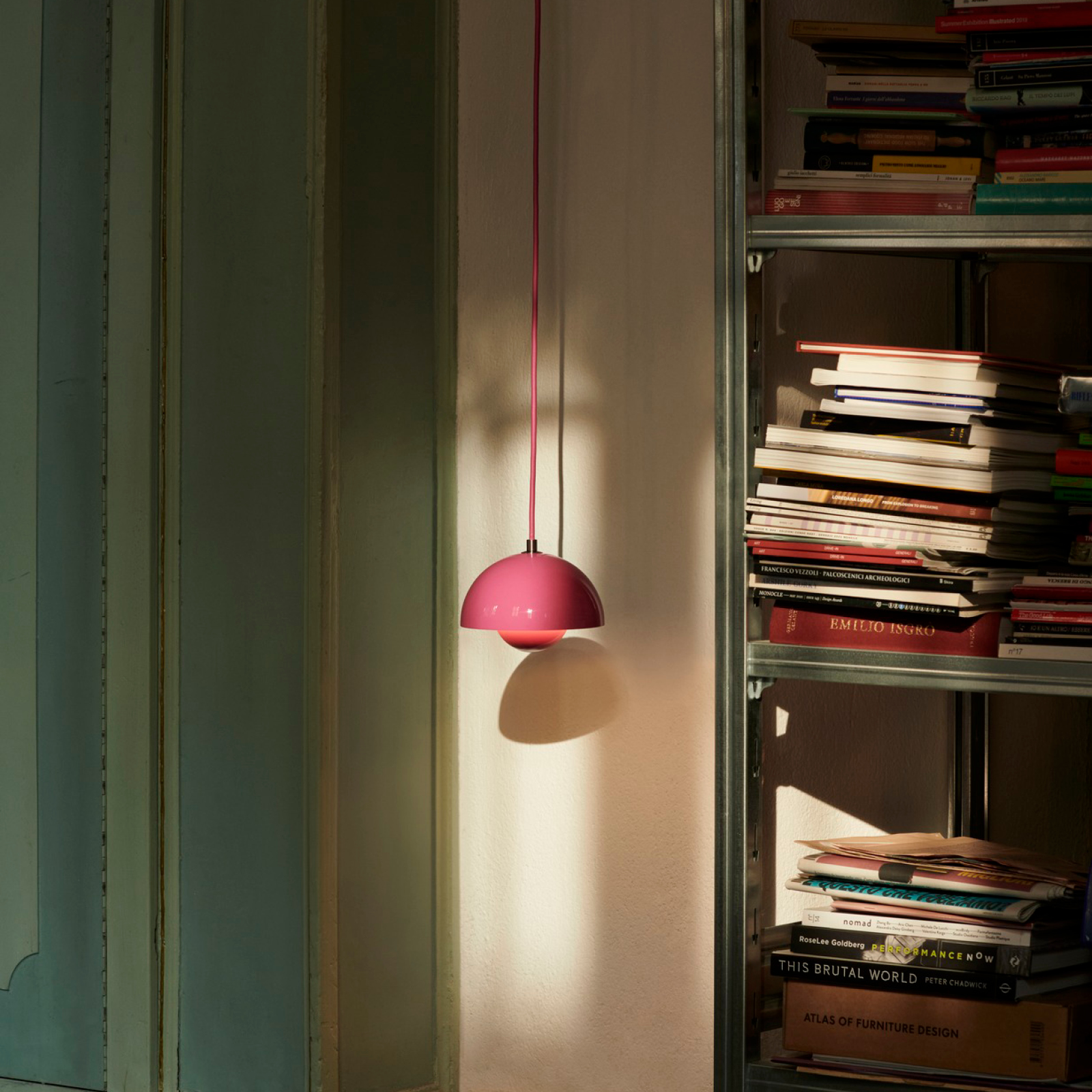 Lámpara de suspensión. Una parte querida de la colección de &Tradition desde 2010, el colgante Flowerpot ahora está disponible en un nuevo tamaño más pequeño. Con un diámetro de 16 cm, viene en los 14 colores disponibles, junto con la reedición de un diseño original de Panton que presenta un patrón de ondas en blanco y negro.