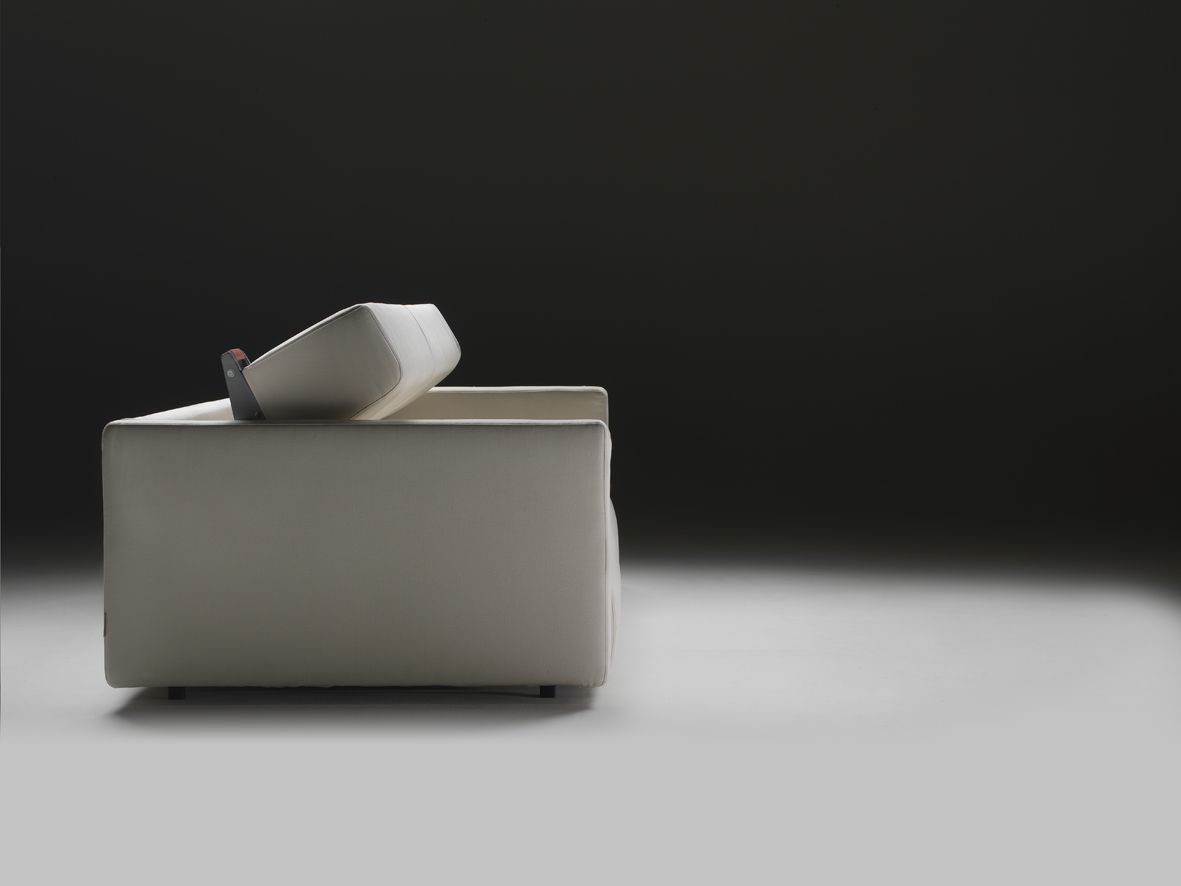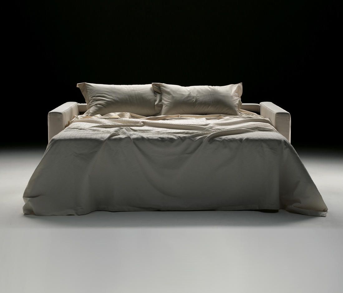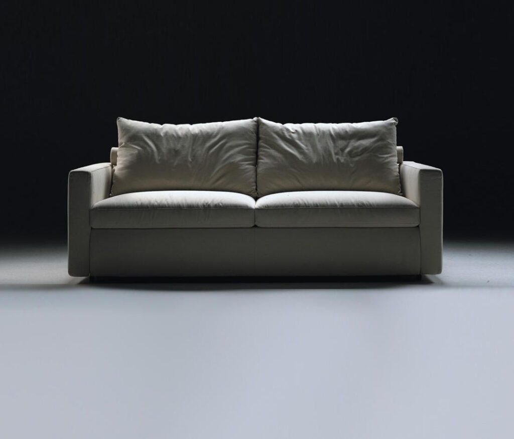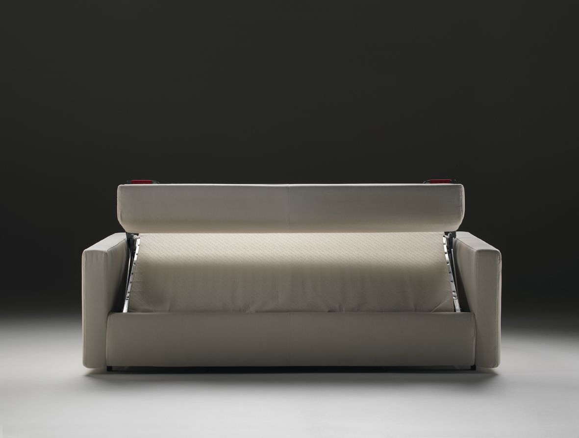 Sofá cama doble. Cerrado es un sofá de lineas elegantes, con la comodidad característica de Flexform. La cama se extrae fácilmente mediante un movimiento mecánico. Tendremos una cama con colchón de poliuretano de 160 x 200 cms.