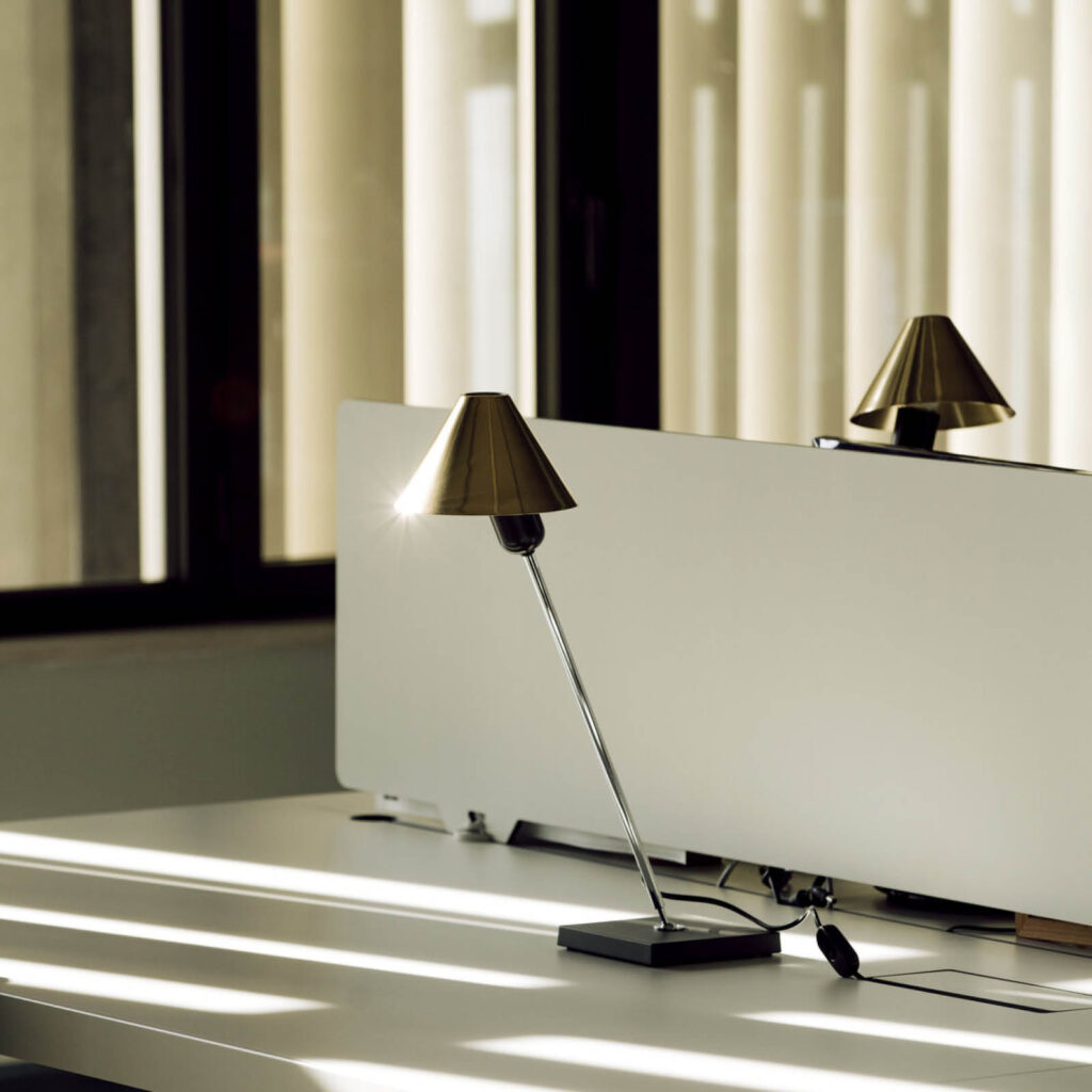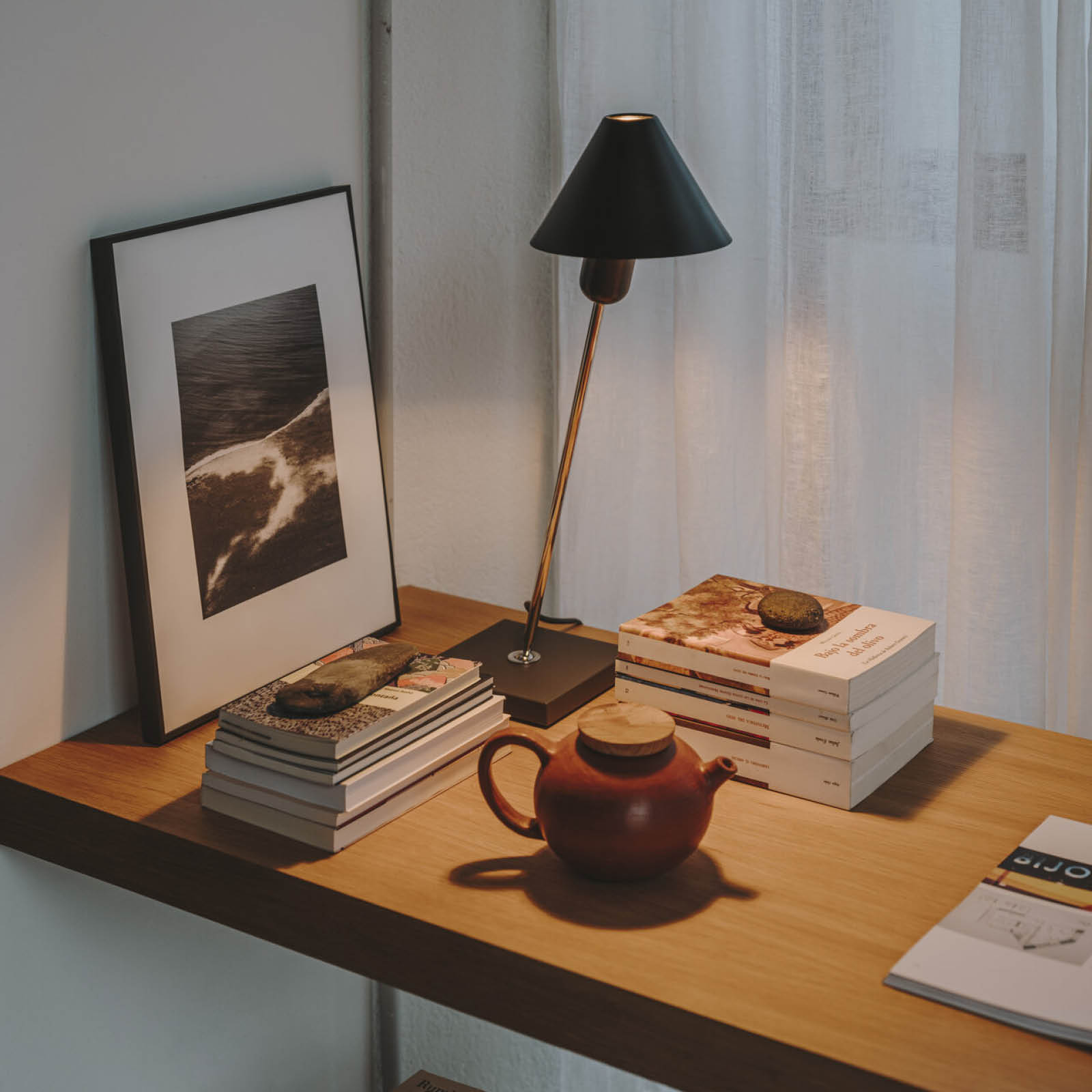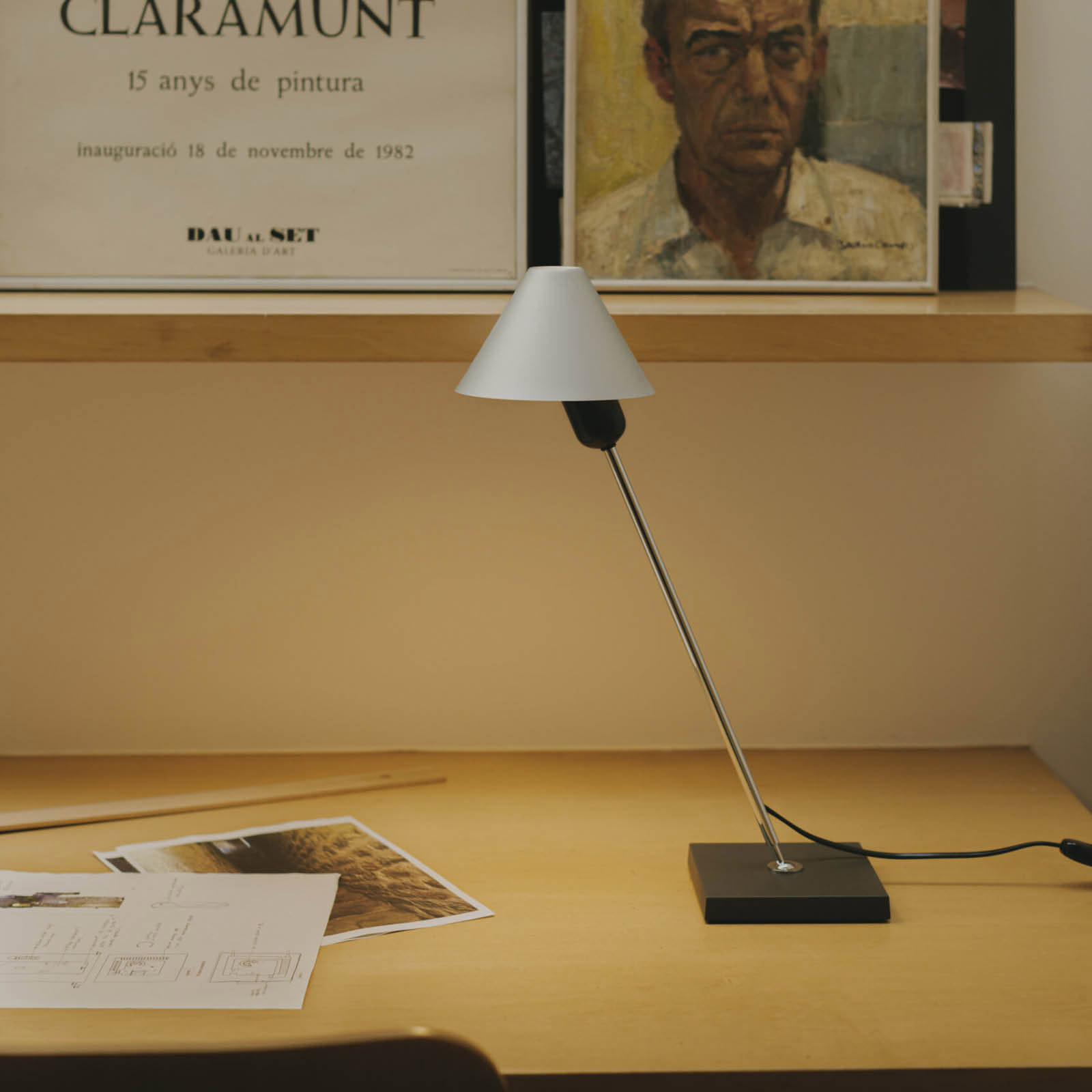 La lámpara Gira tiene la sencillez y el perfil de un clásico. Esta lámpara sintetiza todos los elementos fundamentales, aportando capacidad de movimiento mediante la rotación de su brazo y la orientación de la pantalla. Estupenda para el trabajo, Gira se concentra en darle el protagonismo a la luz, creando espacios de iluminación de sobremesa.