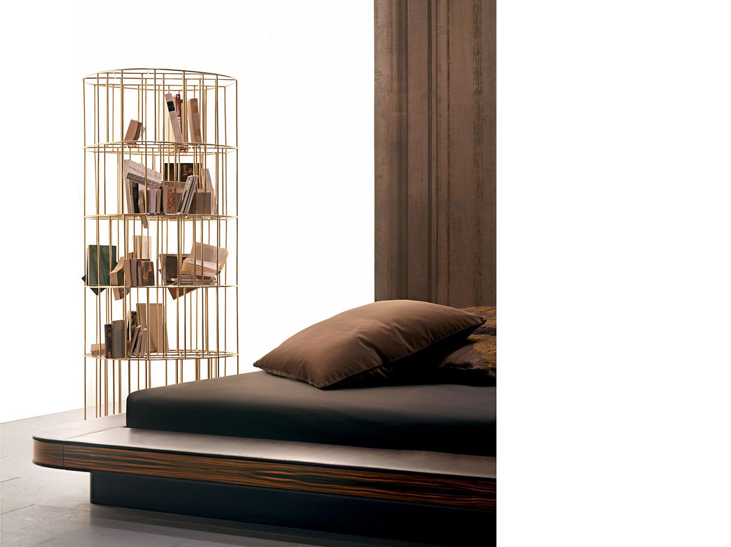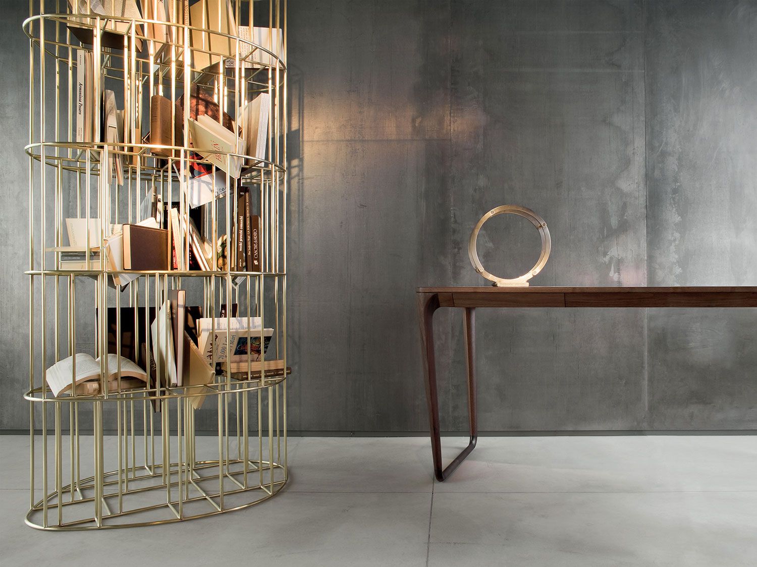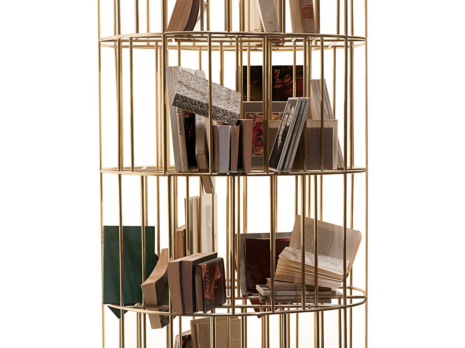 Fruto de la fructífera colaboración con el diseñador Vincenzo De Cotiis, Golden Cage se creó en 2007. Con sus sólidas formas curvilíneas y su acabado en latón, la librería se inspira en los gloriosos años veinte, recordando el ambiente de principios del siglo XX. Un icono del diseño que subraya la consumada maestría artesanal y de producción de la empresa. Un clásico contemporáneo que reinterpreta el concepto de librería y le confiere todo su encanto. Disponible en dos tamaños diferentes, está fabricada con varillas de latón de 10 mm, soldadas y cepilladas completamente a mano. Casi una «escultura doméstica», para exponer en el centro de la habitación. Al mismo tiempo, también es funcional. De hecho, como su nombre indica, Golden Cage está diseñada para salvaguardar nuestras posesiones más valiosas.