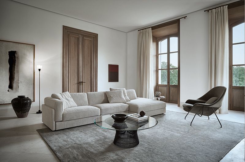 Sofá de amplias proporciones y grandes cojines para garantizar una comodidad extraordinaria. De diseño cómodo y elegante.