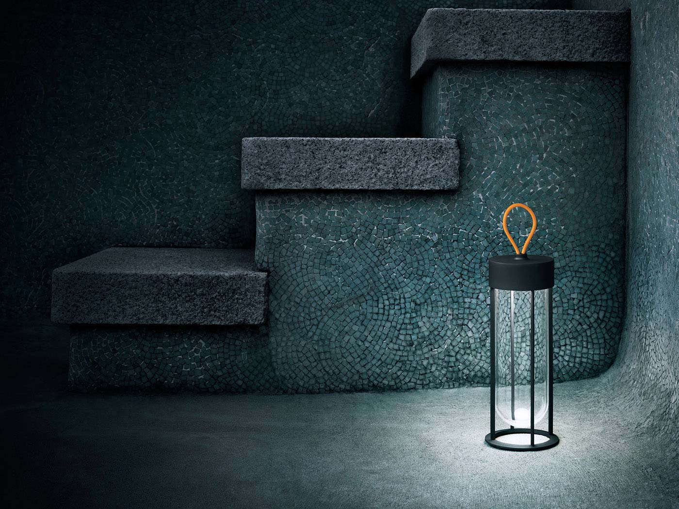 El cuerpo está lacado con polvo y está disponible en diversos acabados.Fuente luminosa de LED integrada con tecnología óptica Edge Lighting para garantizar una perfecta uniformidad luminosa.Versión portátil dotada de asa para el transporte. Controlador regulable en intensidad. Recargable con cable micro USB-C de 120 cm de largo, que garantiza una emisión continua de hasta seis horas.