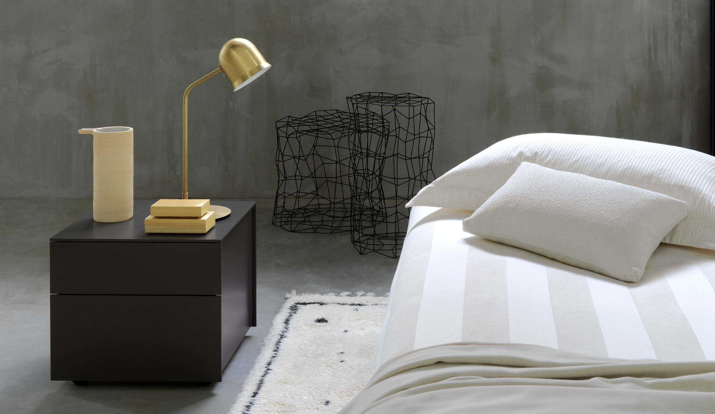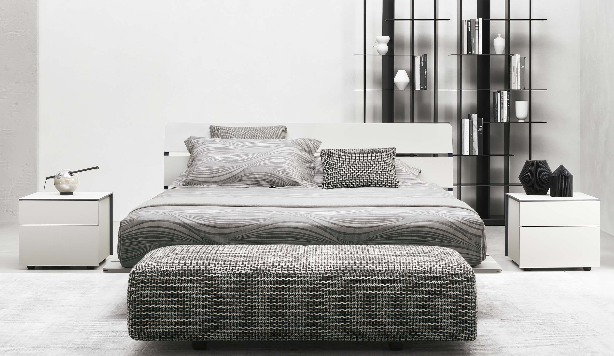 Cómoda de lineas rectas, simples. Con cajones. Disponible en laca mate de todos los colores de la coleccciónd e Flou. Disponible tamién como mesita de noche y en cómoda alta.