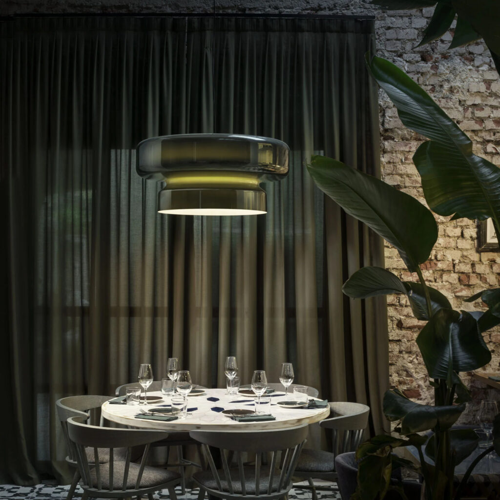 El resultado es un perfil orgánico, emocionante y translúcido que integra dos volúmenes en una sola forma. Esto permite una gran pantalla en diferentes colores que no interfieren con el interior, siempre blanco, ofreciendo una iluminación impecable sin mezcla de color. Está disponible en ámbar, verde y, como novedad, en un acabado ahumado. Este último color ofrece menos contraste, con una apariencia monocromática más discreta, permitiendo que la forma sea la protagonista en lugar del color.