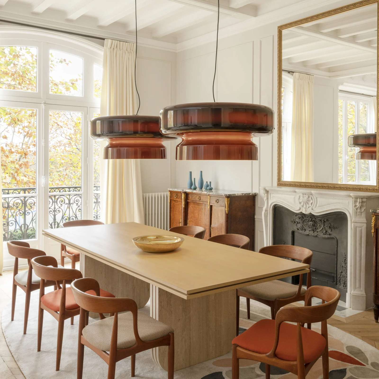 Cuando está encendida, la Bohemia emite una luz blanca hacia abajo, realzando la pantalla con sutiles matices y sombras. Este juego entre sombra y luz define los dos volúmenes. La Bohemia es luminosa e impactante, con una luz excepcional que busca sorprender a todos los espectadores.
