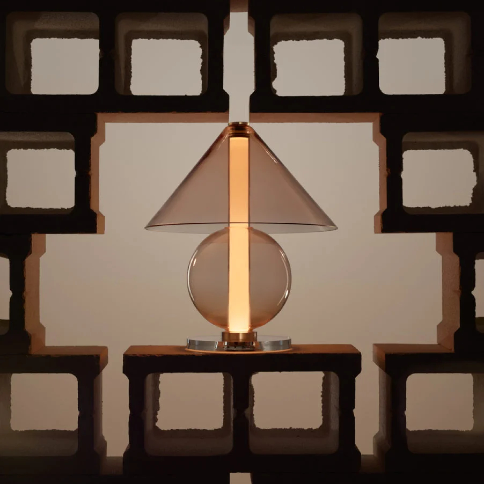 Fascinado por el diseño atemporal, el diseñador Jaume Ramírez se interesa en la lámpara de mesa arquetípica en la que una pantalla distribuye la luz en todas direcciones. Este es el punto de partida desde el cual reflexiona y experimenta para proponer un nuevo diseño en vidrio, con formas más estilizadas. La lámpara Fragile es una mezcla de formas geométricas. Un cono y una esfera están dispuestos para sostener un cilindro que emite luz ambiental desde abajo.