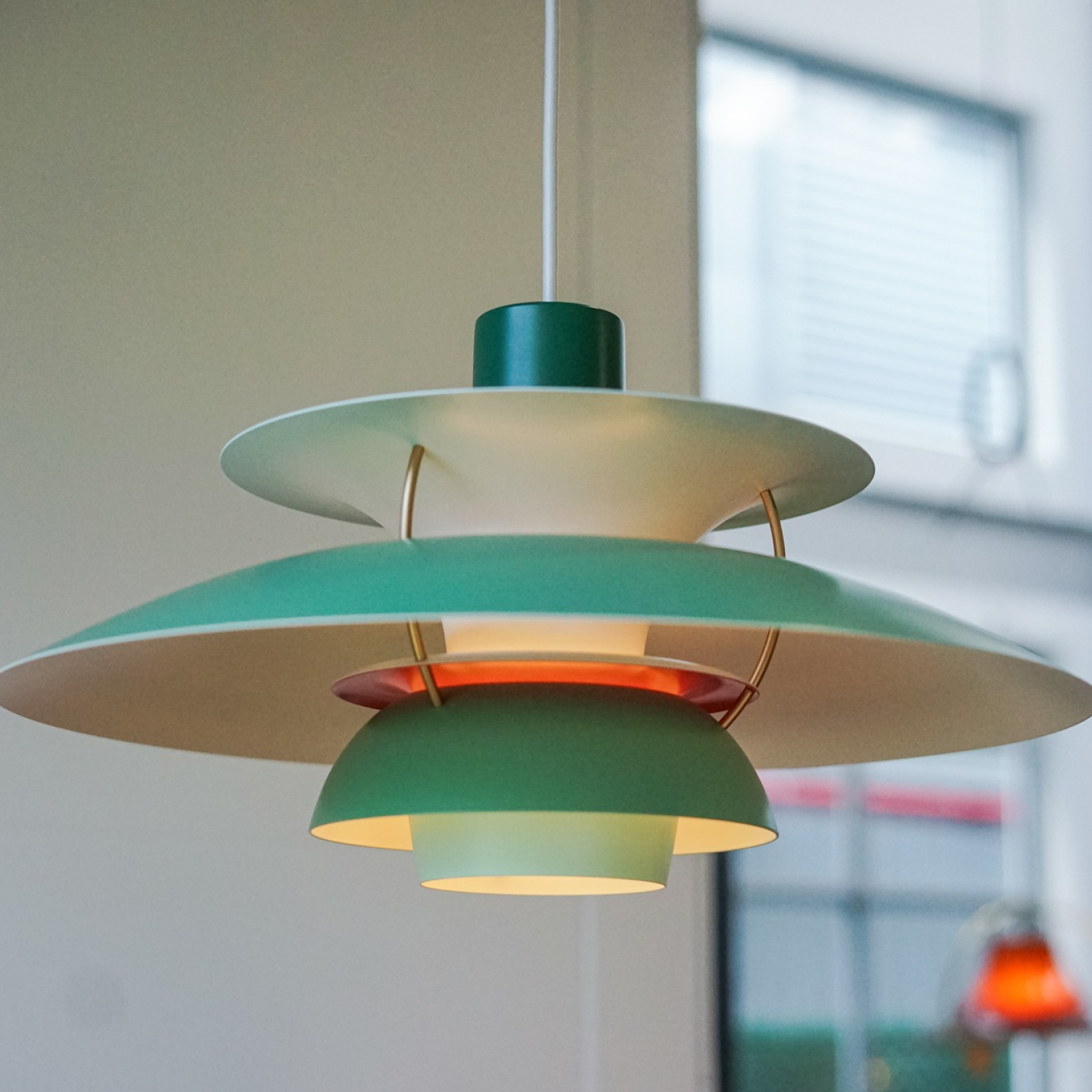 Poul Henningsen diseñó el PH 5 en 1958 como una reacción en contra de las muchas alteraciones que los fabricantes de bombillas hacían a la forma y el tamaño de las bombillas incandescentes en ese momento, que Henningsen consideraba completamente insensatas. El PH 5 se adaptaba a todos los tipos de fuentes de luz al convertir todo en una iluminación amable. Esto hizo que el PH 5 se hiciera tan famoso que se convirtió en sinónimo de «la luz PH», que aún hoy ilumina incluso los interiores más contemporáneos, al igual que el PH 5 Mini.