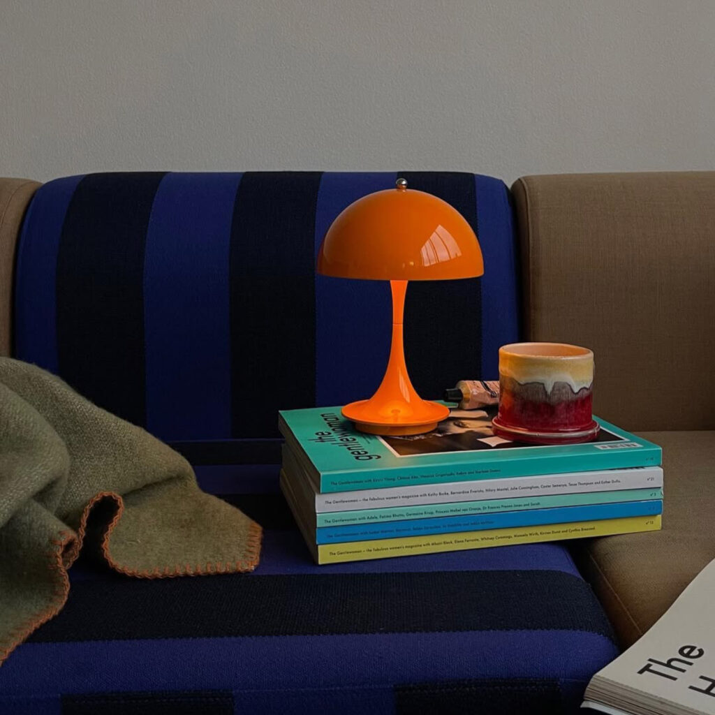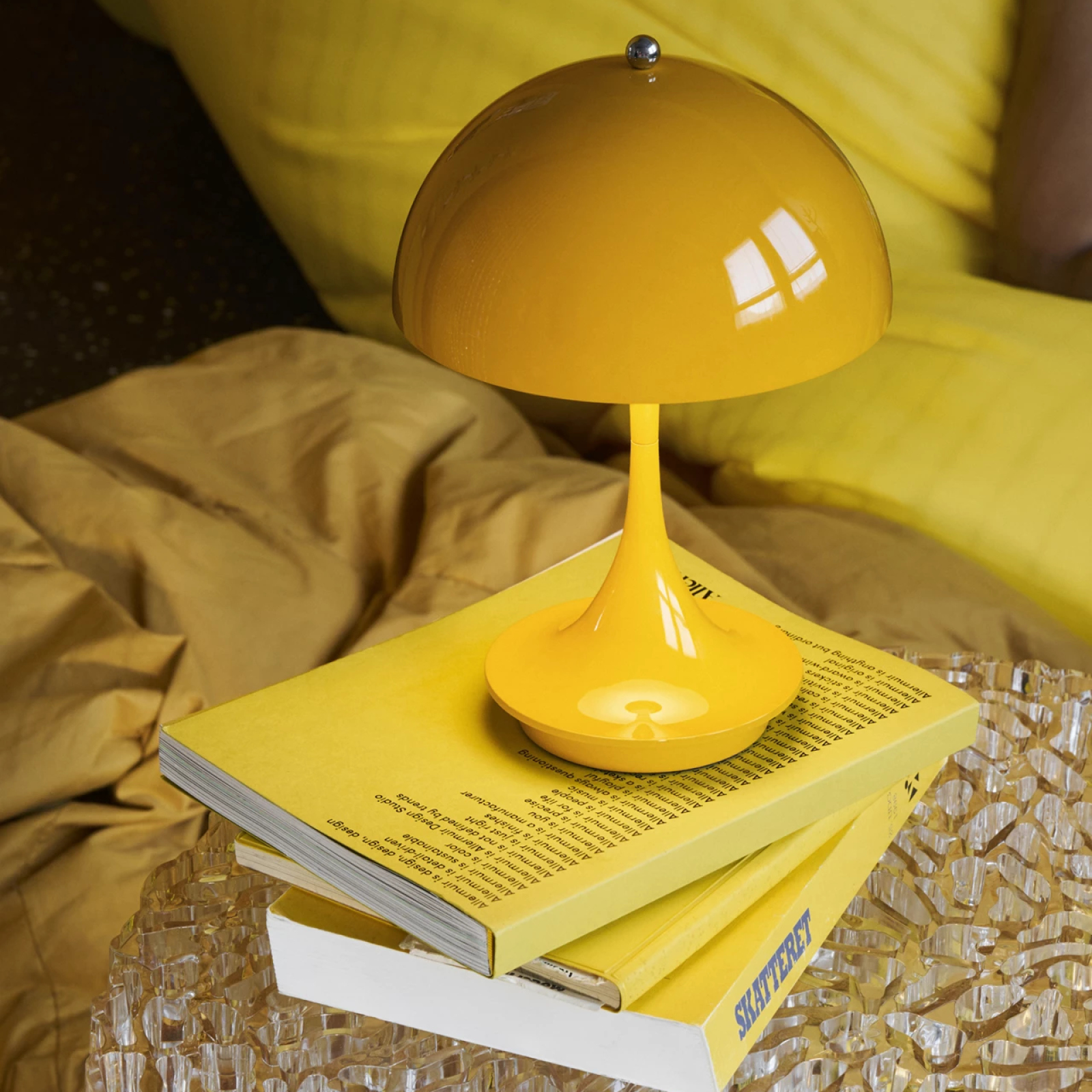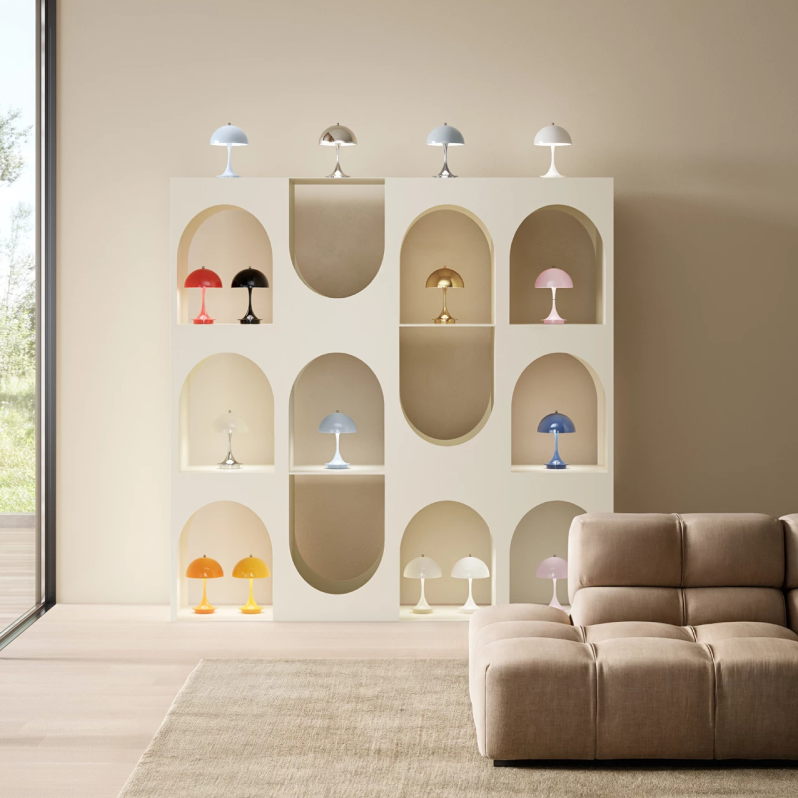 El diseño de la lámpara Panthella es uno de los diseños más significativos de Verner Panton, que refleja la personalidad más grande que la vida del arquitecto danés. Su objetivo era crear una lámpara de forma orgánica que proporcionara una luz 100 % antideslumbrante, con el soporte y la pantalla que sirvieran como reflectores de luz. Panton lo consiguió fabricando la lámpara Panthella con Louis Poulsen en 1971. La forma característica de la lámpara y su capacidad para reflejar la luz suave desde su base en forma de trompeta han consolidado su estatus como icono del diseño. La lámpara Panthella 160 Portable es una versión reducida del diseño original. La lámpara tiene solo 160 mm de diámetro, por lo que es el tamaño perfecto para llevarla de una habitación a otra o al aire libre en el balcón o el jardín, donde tendrá un aspecto increíble y creará un ambiente maravilloso.