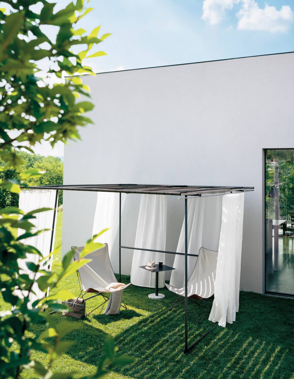 Sillones de exterior con un diseño sencillo y elegante, atemporal y sin lugar: Lawrence combina la sencillez del algodón con diferentes colores, creando un juego de colores perfecto para los muebles de exterior.