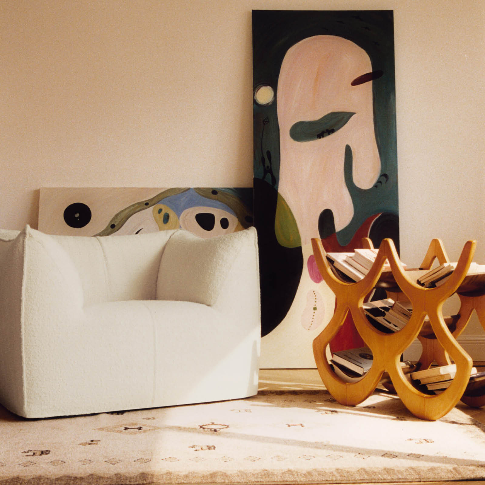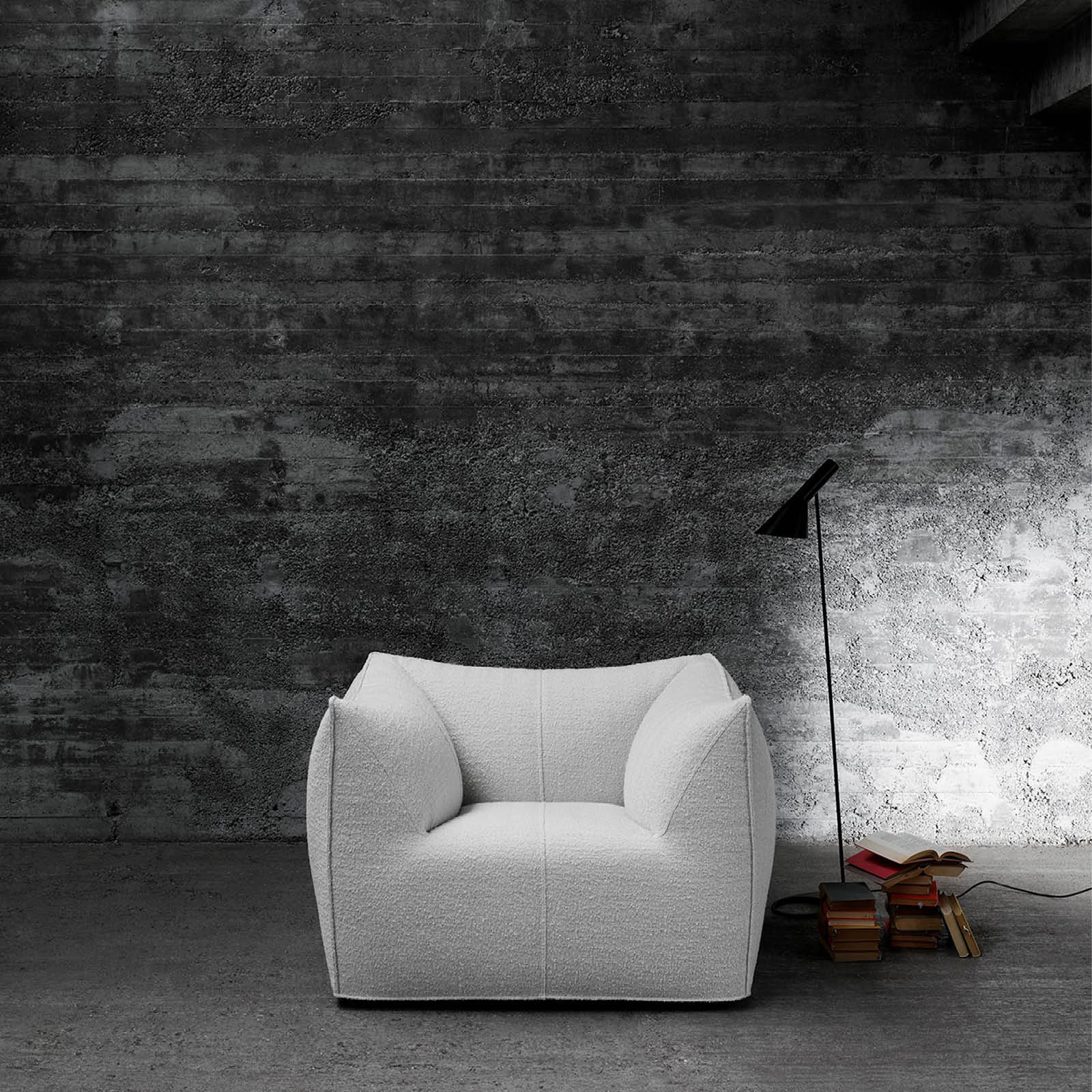El sillón Bambola forma parte de la serie Le Bambole, diseñada originalmente en 1972 y galardonada con el Compasso d’Oro en 1979. Ícono de contemporaneidad atemporal y una de las expresiones más efectivas de la excelencia del Made in Italy, combinando investigación y creatividad, Le Bambole han brindado una respuesta muy personal al tema de los asientos. Lo que los hace especiales es la aparente ausencia de una estructura portante, la extrema naturalidad de la forma y la combinación de confort, suavidad y elasticidad que transmite su apariencia. Mientras que la construcción original se basaba en una estructura metálica incrustada en poliuretano, ahora los materiales utilizados son de última generación, comenzando con polietileno reciclado que da estructura. Un proyecto sostenible gracias a la elección de materiales y el método de construcción, que permite que los componentes de Le Bambole sean completamente desmontables y, por lo tanto, fácilmente reciclables.