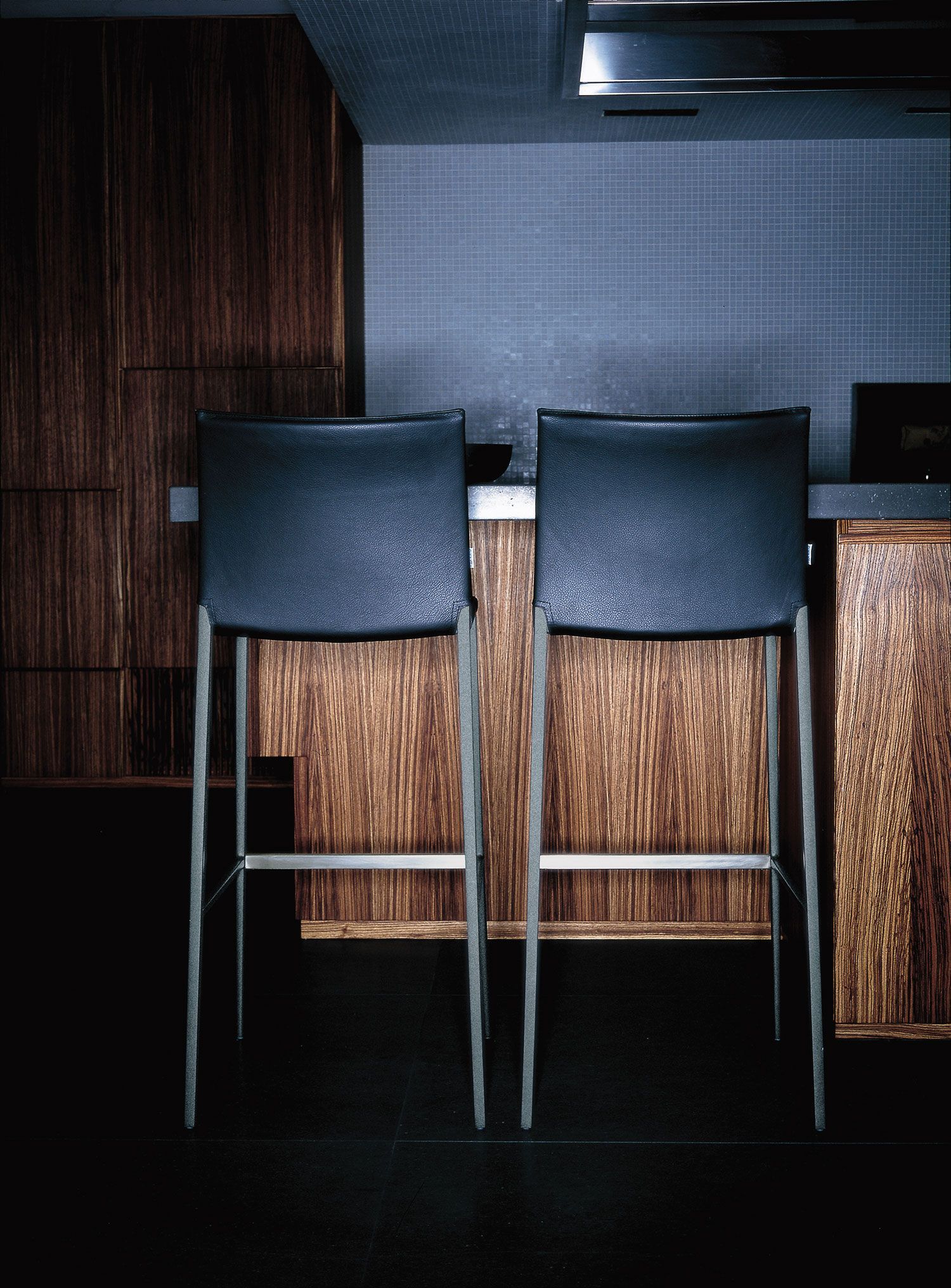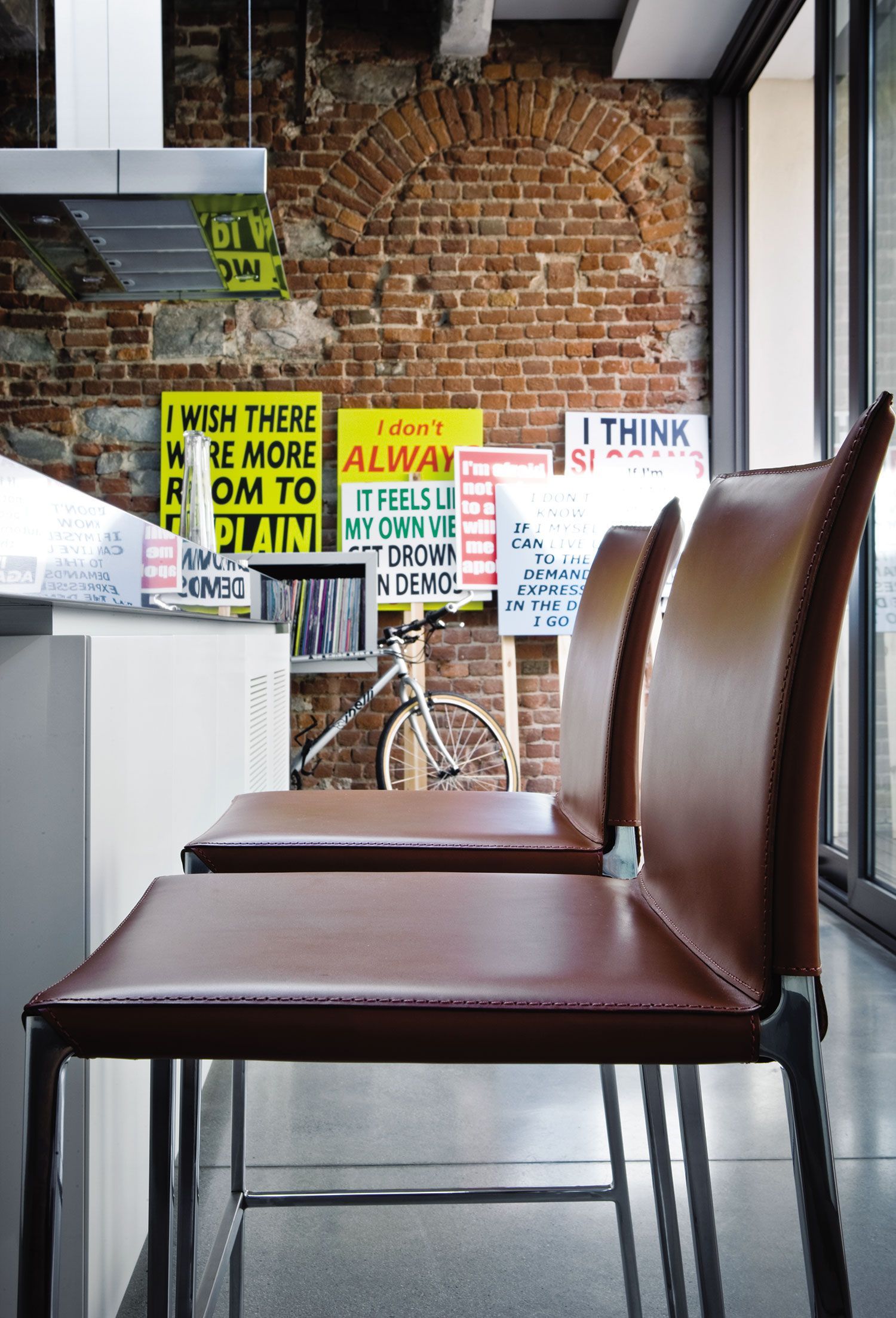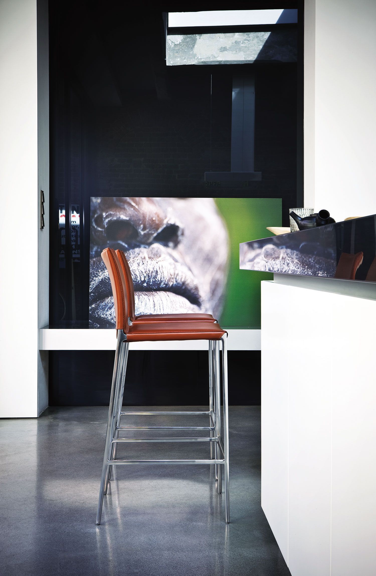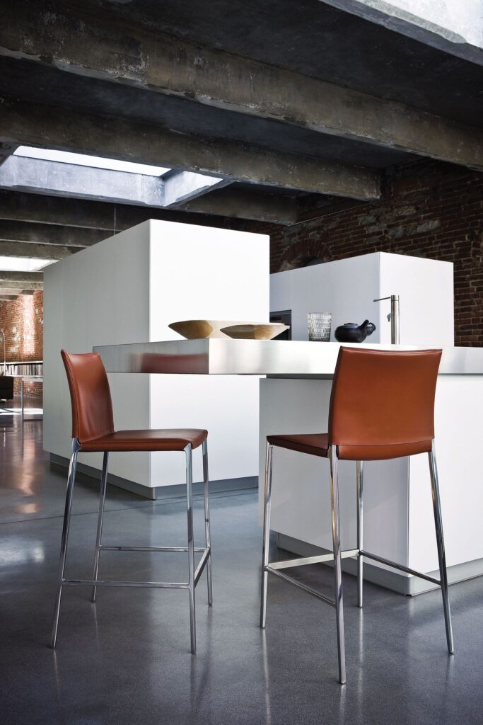Taburete con un lateral elegante realizado en una pieza de aluminio inyectado. Completamente desenfundable.