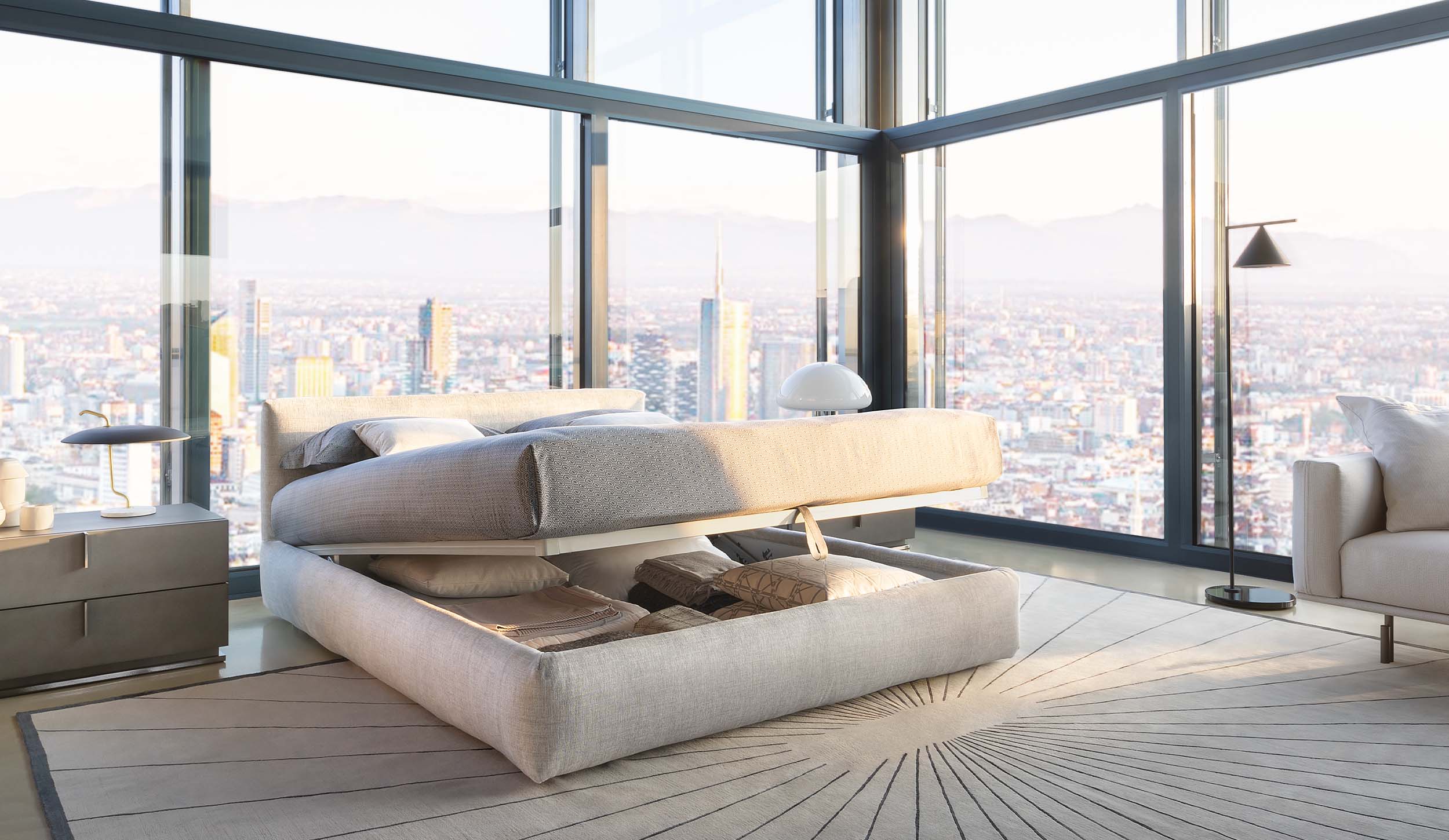 Cama completamente tapizada y acolchada, tanto su base como su cabezal. Su base de unos 38 cms de altura, nos permite tener la opción de que esa misma base sea contenedor y así poder aprovechar ese espacio. Completamente desenfundable, disponible en varis medidas y con varios modelos de somier. S epiede tapizar en diferentes categorias de piel y de tela.