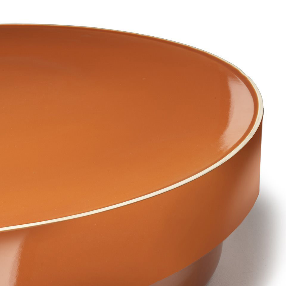 Philippe Malouin se inspiró en un detalle particular del proceso artesanal de la cerámica: la base sin esmaltar de los jarrones, debido al contacto con las paredes del horno durante la vitrificación. Este elemento característico, generalmente considerado un efecto secundario de la producción, se ha convertido en un detalle distintivo en la colección Ta.Ba.Ce. Esta elección estilística crea un juego de texturas y contrastes, realzando las líneas de las mesas y otorgándoles una identidad única y reconocible.