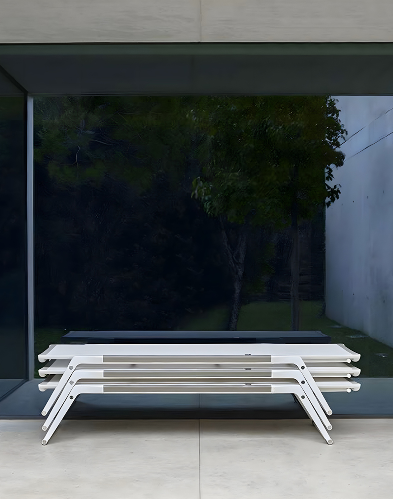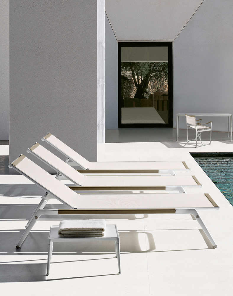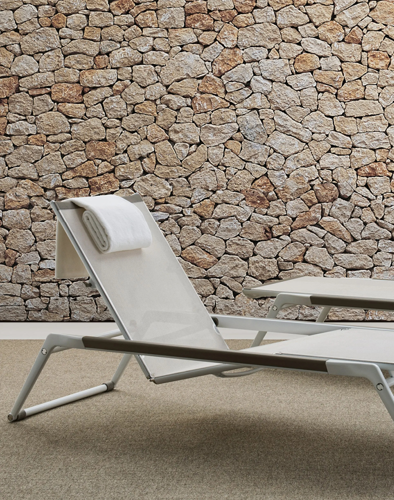 Atemporales, resistentes y duraderas, tanto formal como físicamente, las tumbonas Mirto Outdoor destacan por su diseño esencial y elegante. Presentan una ligera estructura de aluminio y asiento y respaldo en malla Batyline® Canatex, cuya fibra de cáñamo les confiere un aspecto más natural en comparación con los plásticos habitualmente utilizados en este secto