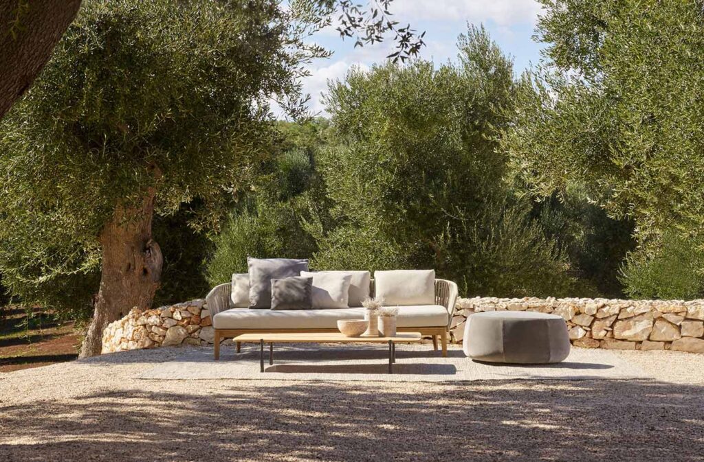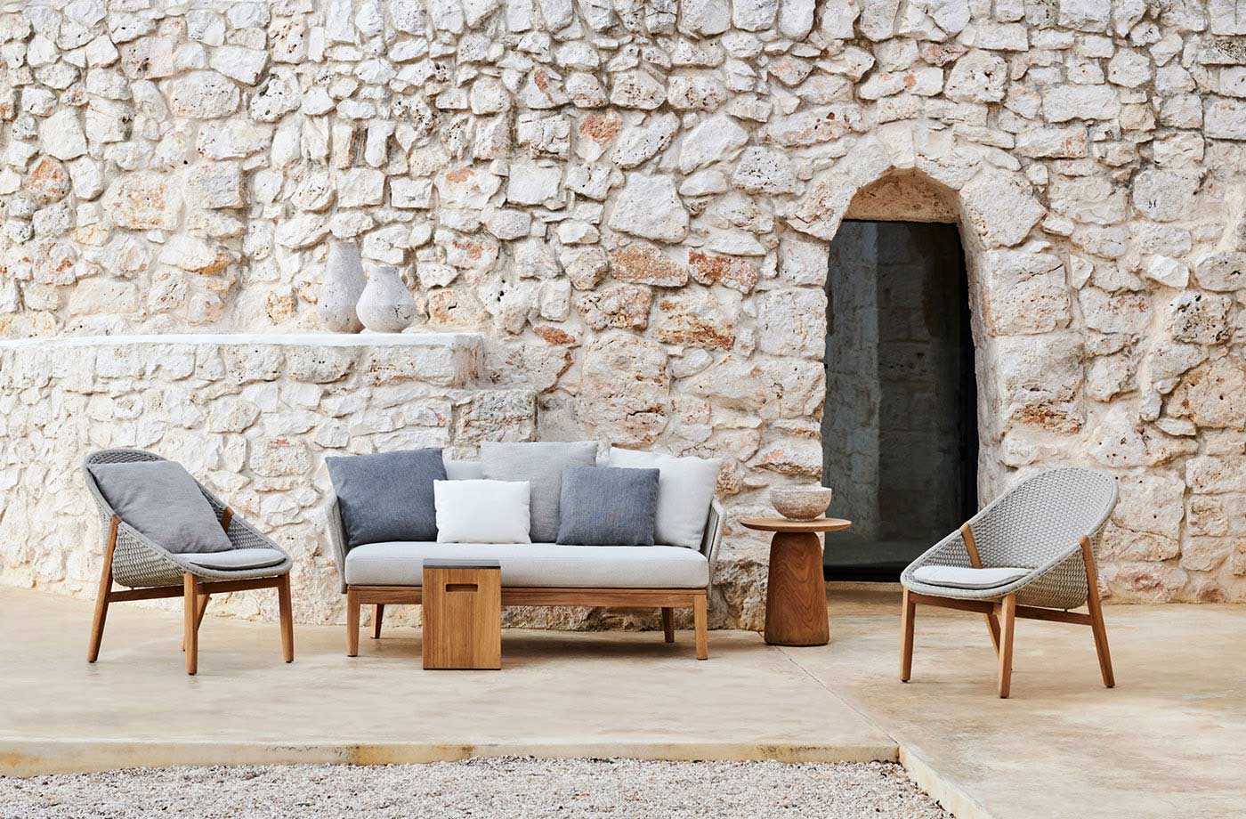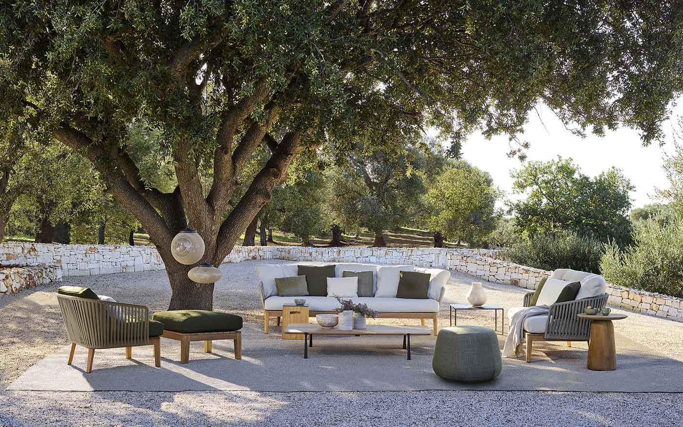 El vaporoso diseño de la colección Mood y la cálida combinación de teca y mimbre trenzado a mano, crea instantáneamente un ambiente especial en su terraza