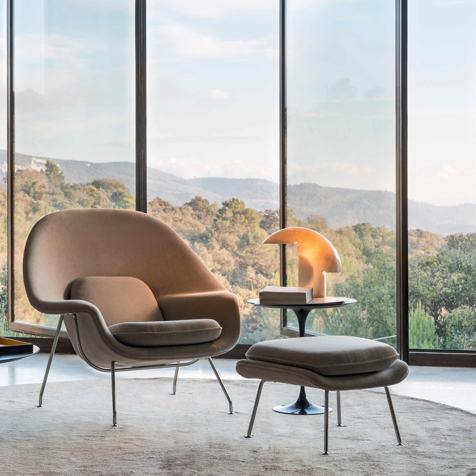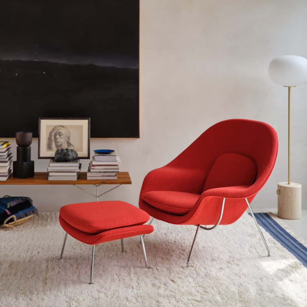 Diseñada por Eero Saarinen en 1948, la innovadora Silla Womb desafió las convenciones de su época sobre lo que una silla podía ser, tanto en las técnicas y tecnologías que permitieron su forma, como, en última instancia, en su función no prescriptiva. Su capacidad para aceptar todas las posturas evoca el confort primigenio del útero, esa seguridad que, según Eero, las personas anhelan. Al lanzarla, el diseñador comentó: «Ahora, más que nunca, necesitamos relajarnos». Sus palabras, y la Silla Womb, siguen siendo tan relevantes hoy como entonces.