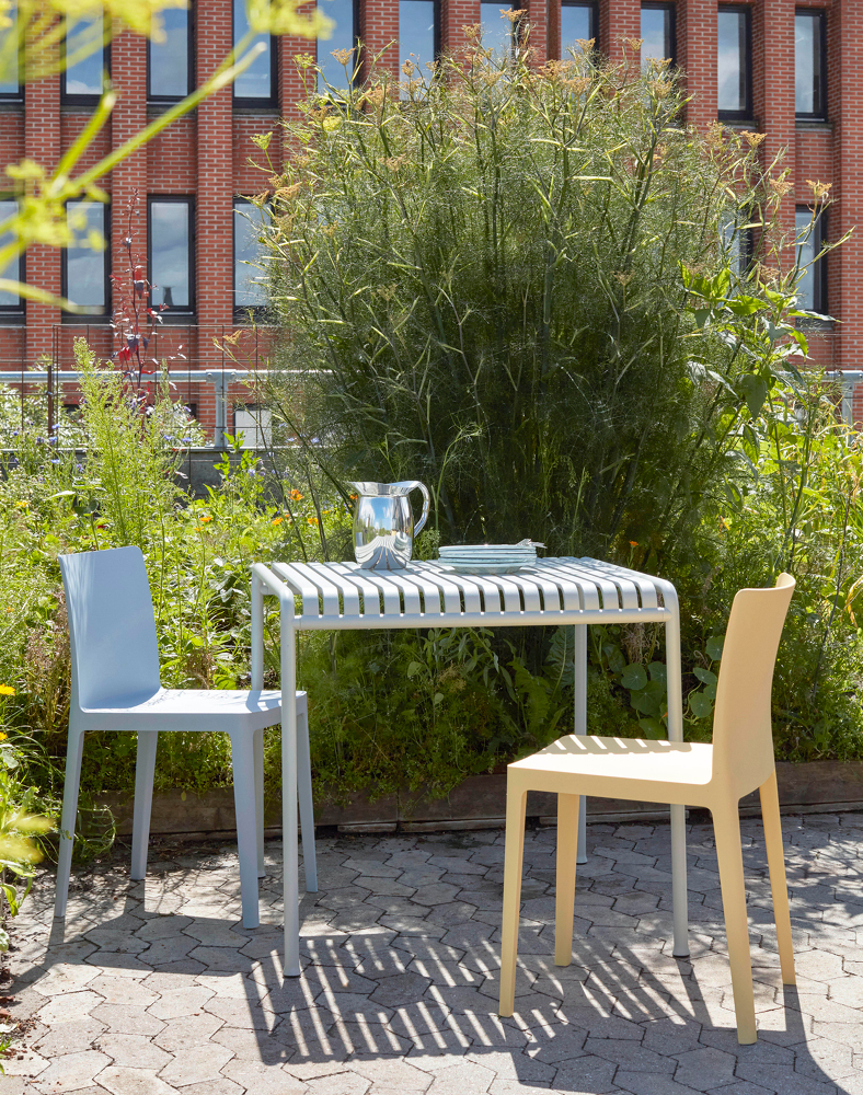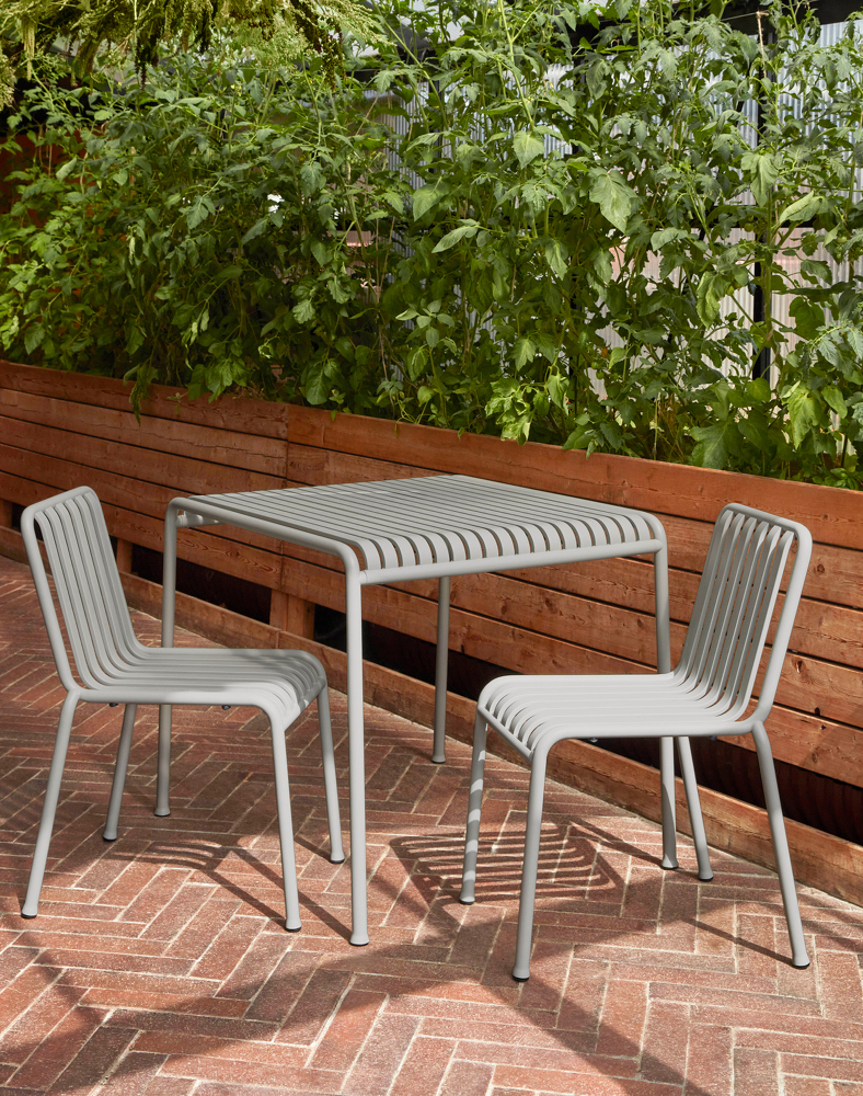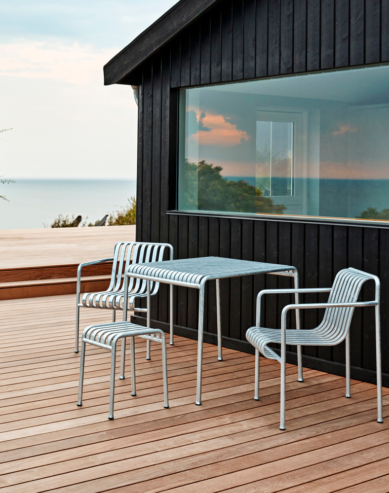 Creado para su uso al aire libre, esta colección equilibrada se compone de 13 diferentes tipos de muebles que comparten el mismo principio geométrico. La colección se ha desarrollado en el transcurso de dos años de Ronan y Erwan Bouroullec para Hay. Los diseños finales están creados a partir de acero con recubrimiento de polvo e incluyen sillas de comedor, mesas, taburete, taburete de bar, banco, banco de comedor, sillón y sofá. La colección Palissade es visualmente ligera pero con fuerza; es clásica en la forma y de construcción sencilla.