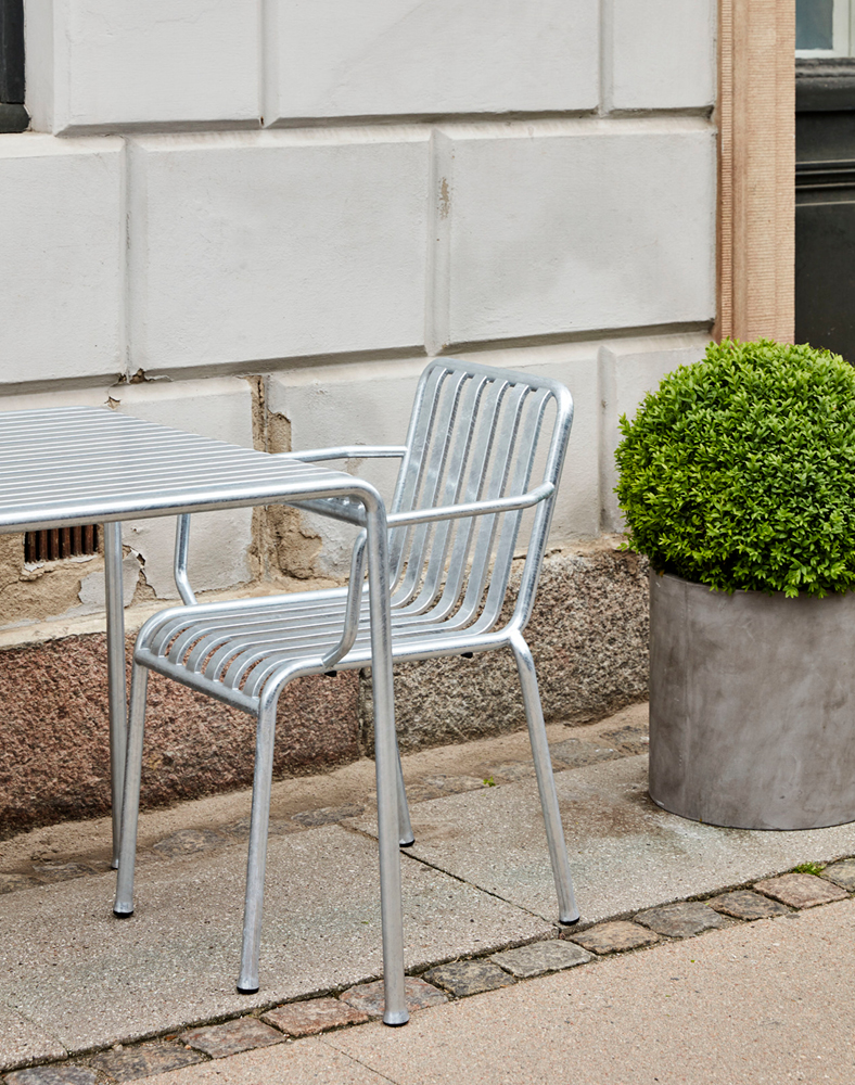 Cada pieza individual ha sido cuidadosamente diseñada para mantener el cuerpo en un equilibrio perfecto. Hay cambios casi imperceptibles, pero significativos en los ángulos, curvas y la yuxtaposición entre el marco y las lamas en cada tipología es diferente. El diseño en sí ofrece comodidad y elegancia, mientras que la paleta de colores de color gris claro, antracita o verde oliva permiten que las piezas estén en un entorno de casa, en paisajes naturales y el medio urbano. La colección Palissade también está disponible con un acabado galvanizado por inmersión en caliente, que ofrece una larga vida útil sin mantenimiento. La colección se adapta perfectamente a terrazas domésticas, jardines, balcones, o ambientes al aire libre más comerciales como cafeterías, bares y restaurantes.