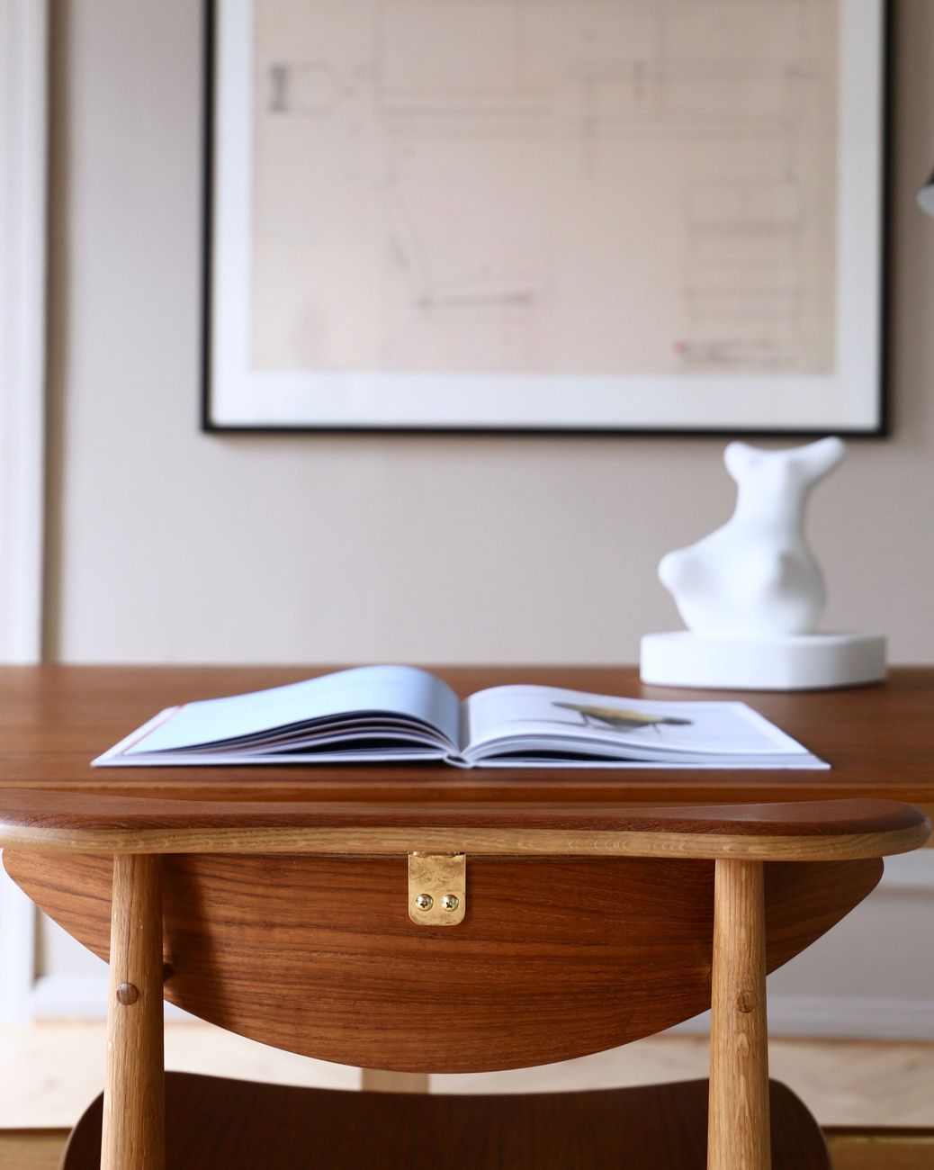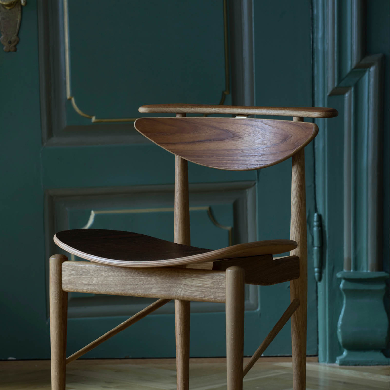Diseñada en 1953, la Silla de Lectura es una de las piezas más simples pero elegantes de Finn Juhl. Caracterizada por detalles intrincados y un diseño único, esta silla muestra una artesanía excepcional. Se fabrica en roble, con una pieza trasera de roble y nogal, o viene en una versión totalmente pintada de negro. Además, también está disponible una versión de la silla con asiento tapizado. La Silla de Lectura es una de las piezas más simples y elegantes de Finn Juhl. La silla se caracteriza por detalles intrincados y una historia peculiar. La silla fue diseñada en 1953 y permite múltiples posiciones de sentado, una función de diseño única que es típica de los muebles de Finn Juhl. Anteriormente, la Silla de Lectura solo estaba disponible con un asiento tapizado, pero ahora ha sido relanzada con un asiento enchapado, como se ve en la primera versión, que Finn Juhl diseñó para la empresa Bovirke.