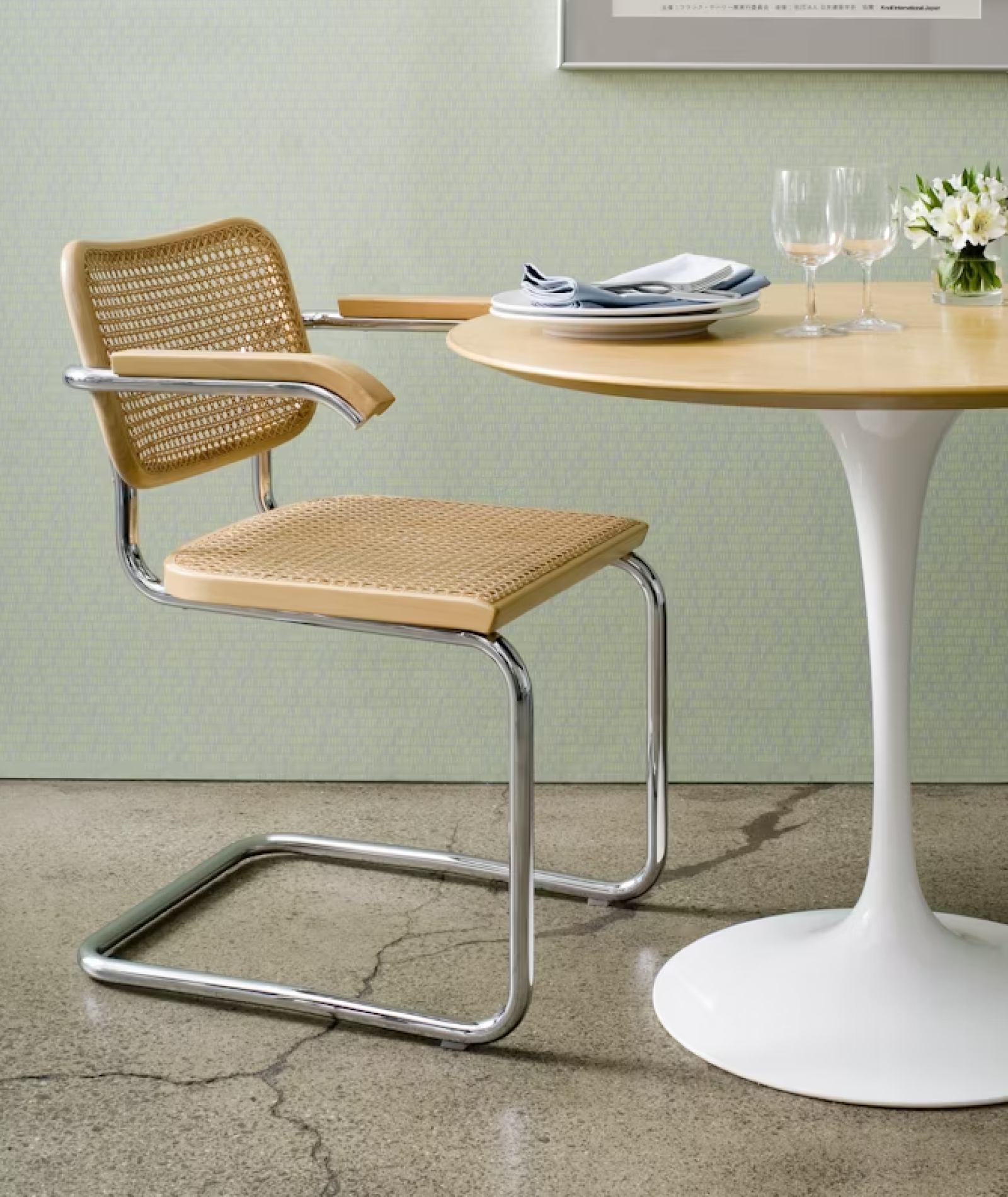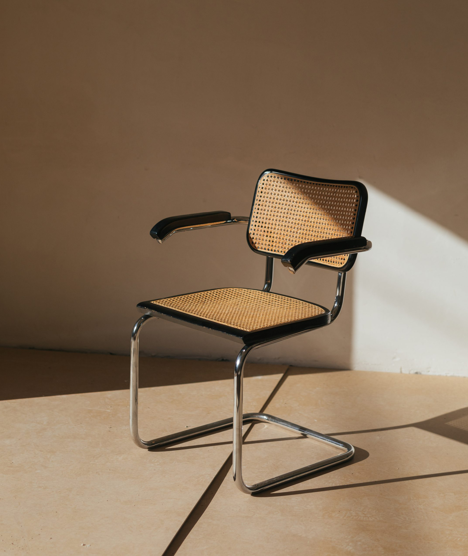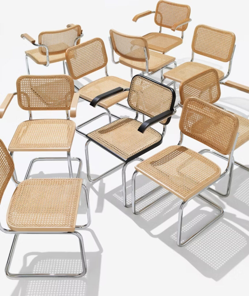 La Silla Cesca tiene una rara y casi inocua simplicidad en su diseño: una linealidad equilibrada por sutiles curvas; una yuxtaposición gráfica de materiales industriales y naturales; y una forma en voladizo que parece flotar en el aire. En 1928, fue una sensación internacional. No existía nada parecido en su época, y su forma icónica demuestra ser contemporánea con el paso de las décadas. Originalmente conocida como la B32, la silla fue renombrada más tarde como «Cesca» en honor a la hija de Marcel Breuer, Francesca.