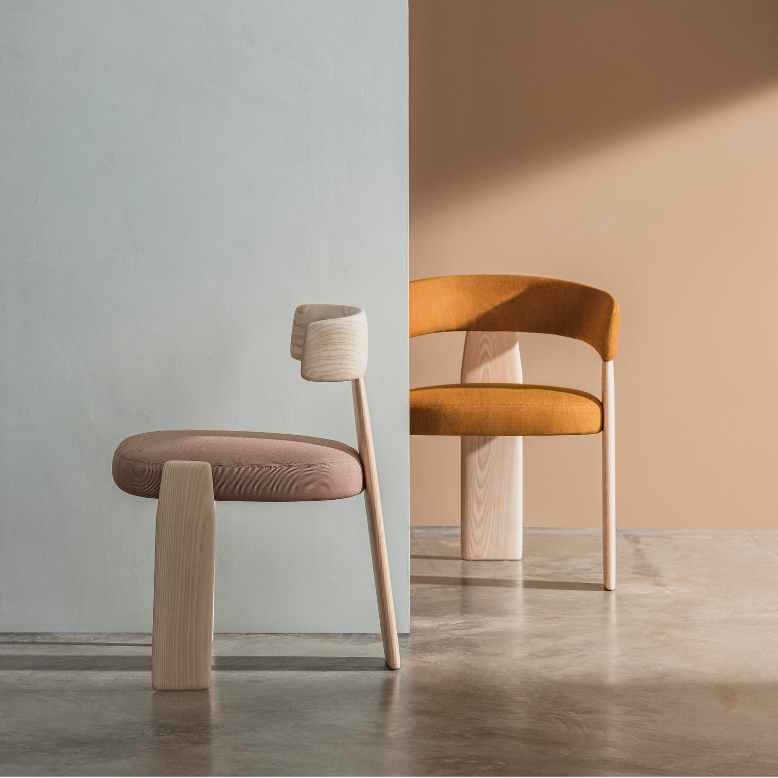Inspirada con el diseño de los años 70 y con una cierta influencia del sentimiento y estado de ánimo japonés, nace la colección Oru. Un diseño audaz que se conjuga con la sorprendente arquitectura de 3 pies. La colección Oru incorpora banquetas en dos alturas, con asiento tapizado y respaldo en madera maciza, el cual puede solicitarse tapizado. Posee formas ideales para la incorporación en espacios residenciales y hosteleros.