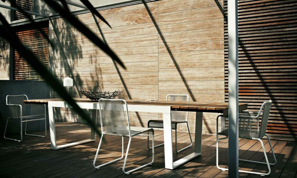 La mesa SPINNAKER se caracteriza por su robustez y su comodidad al hacerla extensible.