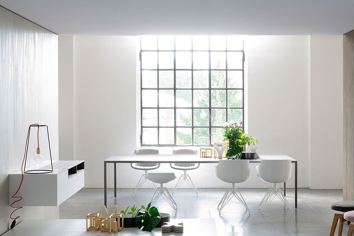 La mesa modelo TENSE representa el concepto de diseñar simplificando una idea de mesa que consigue adaptarse a muchos espacios tanto de hogar como de trabajo. Disponible en varios acabados.