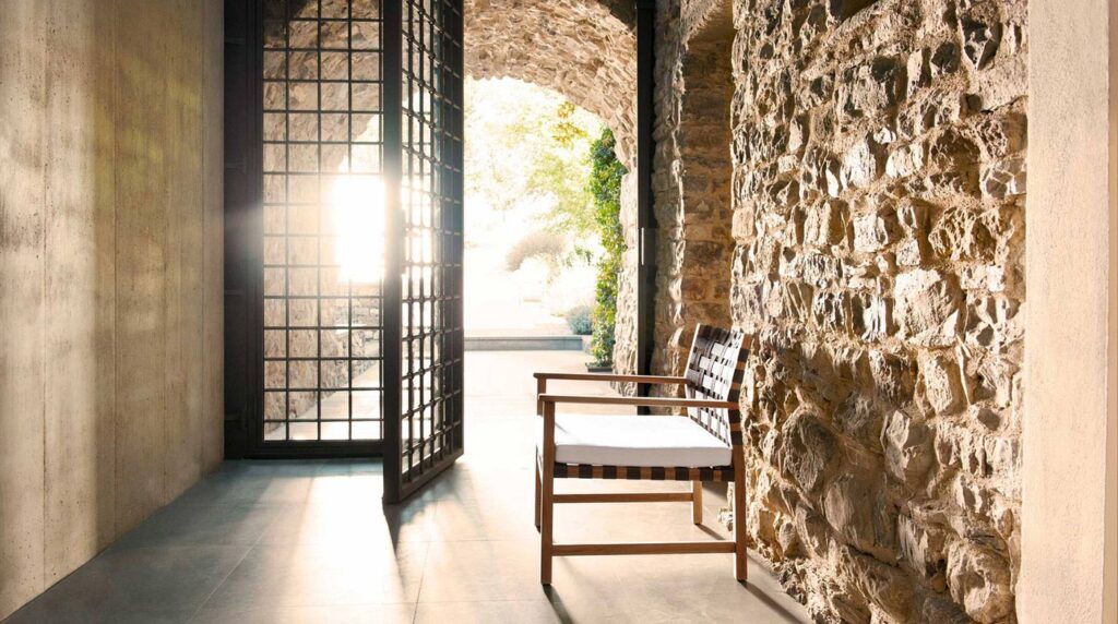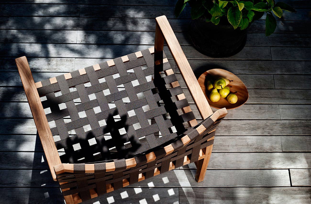 La teca es el material de exterior favorito del diseñador Piergiorgio Cazzaniga, ya que es natural, suave y extremadamente duradero