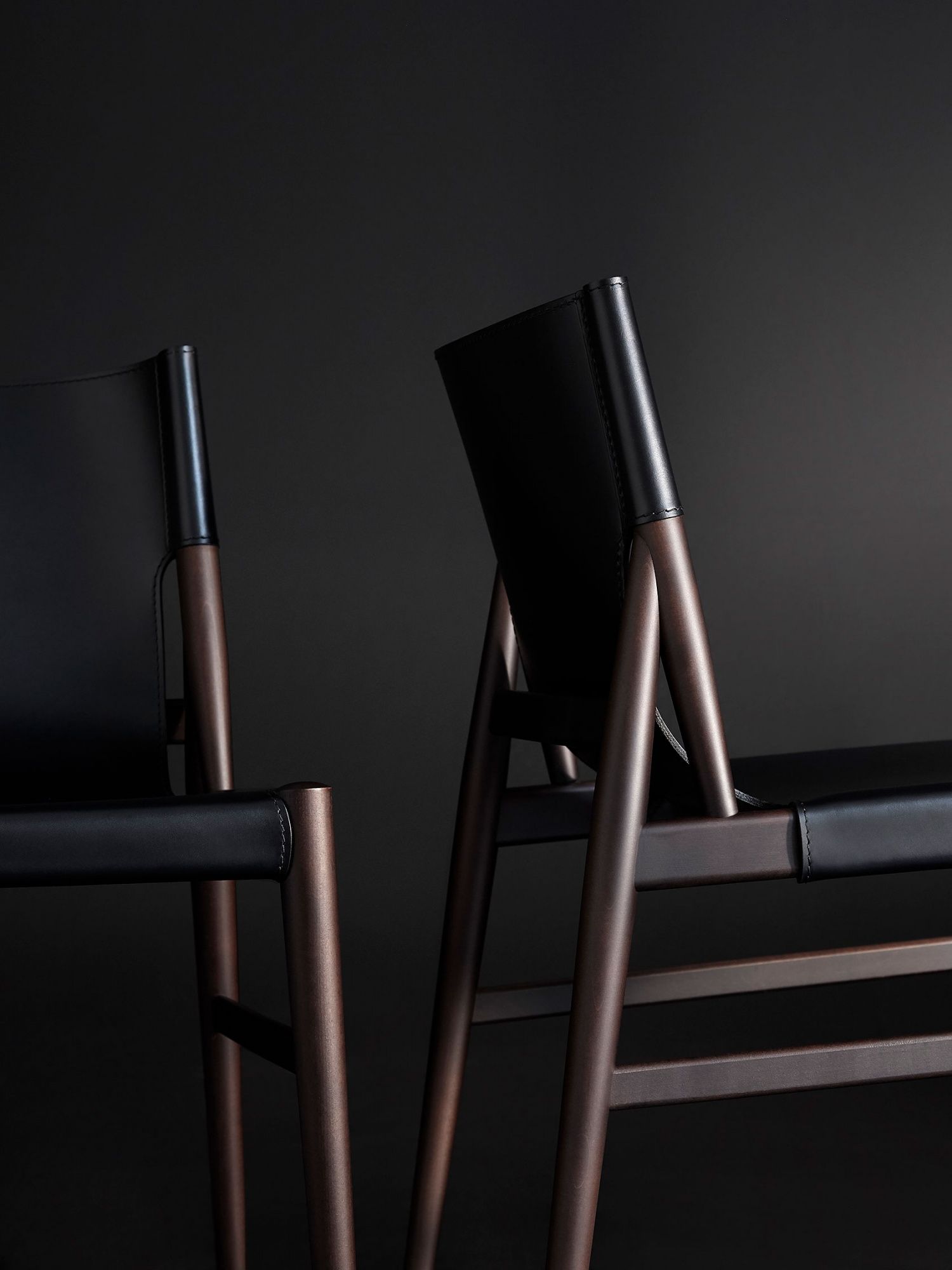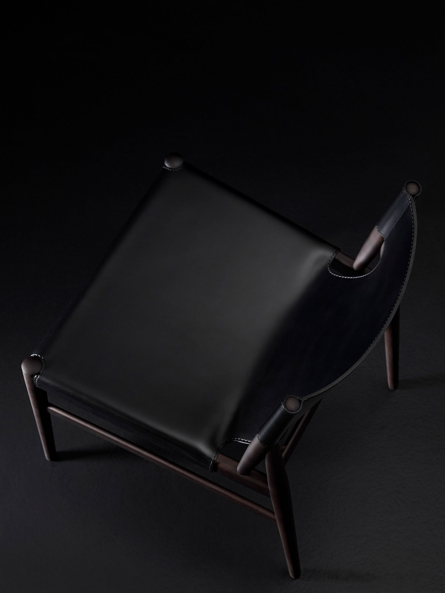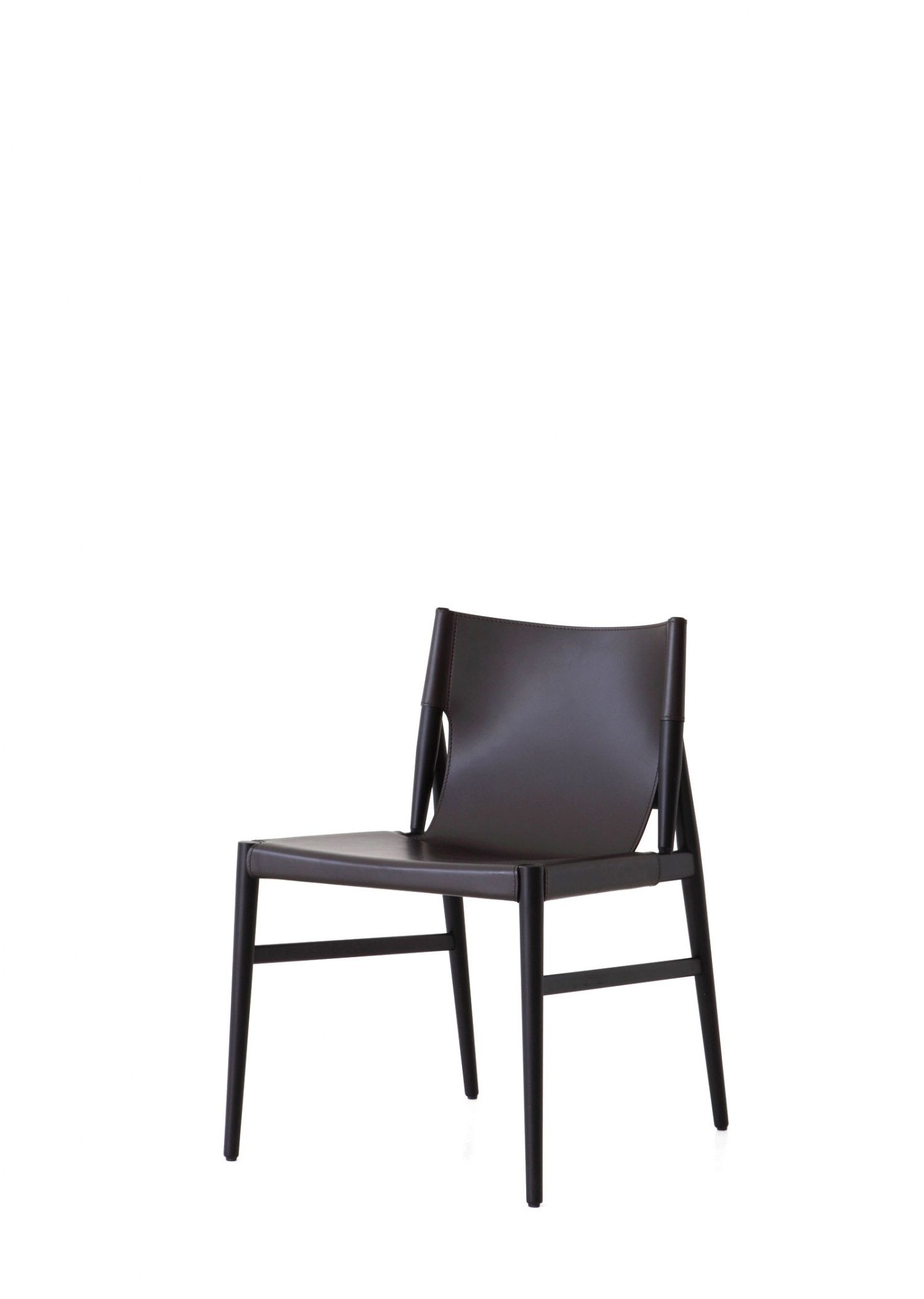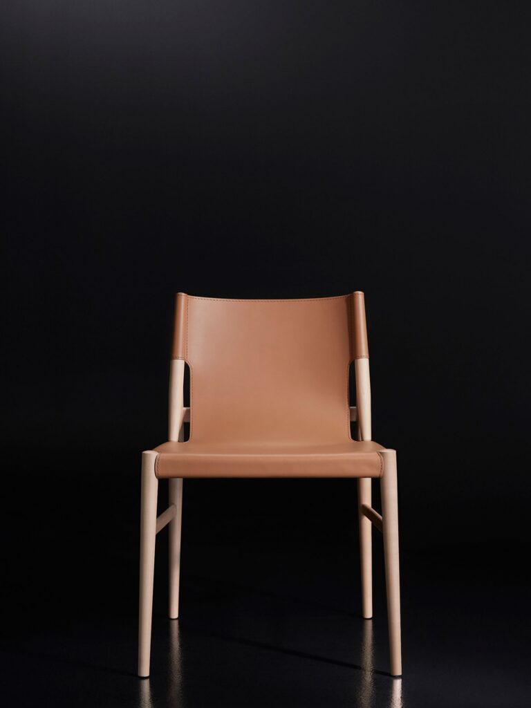 Silla de lineas inspiradas en los años 50. Estructura de madera de arce y asiento y respaldo en cuero de silla de montar.