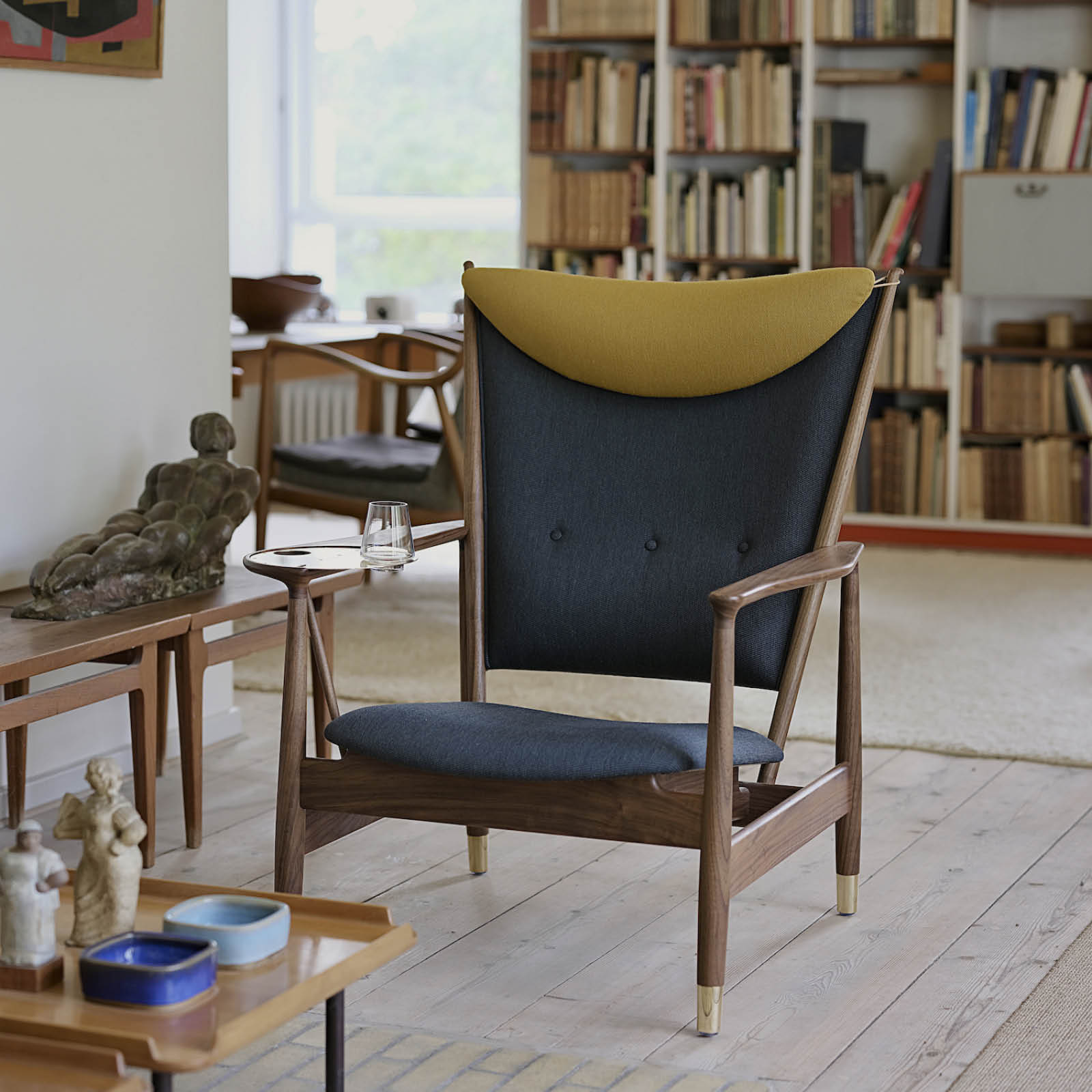 La exclusiva silla fue presentada originalmente en la Exposición del Gremio de Ebanistas en 1948, como parte del concepto de Finn Juhl «La Sala de Estar de un Coleccionista de Arte», pero no se puso en producción. Finn Juhl siempre se atrevió a destacar por sí mismo y no le preocupaban los críticos que encontraban sus diseños demasiado extravagantes.